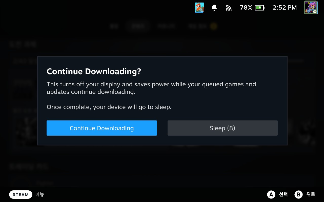▷ 스팀덱 업데이트! ‘디스플레이 오프 다운로드’ 추가!