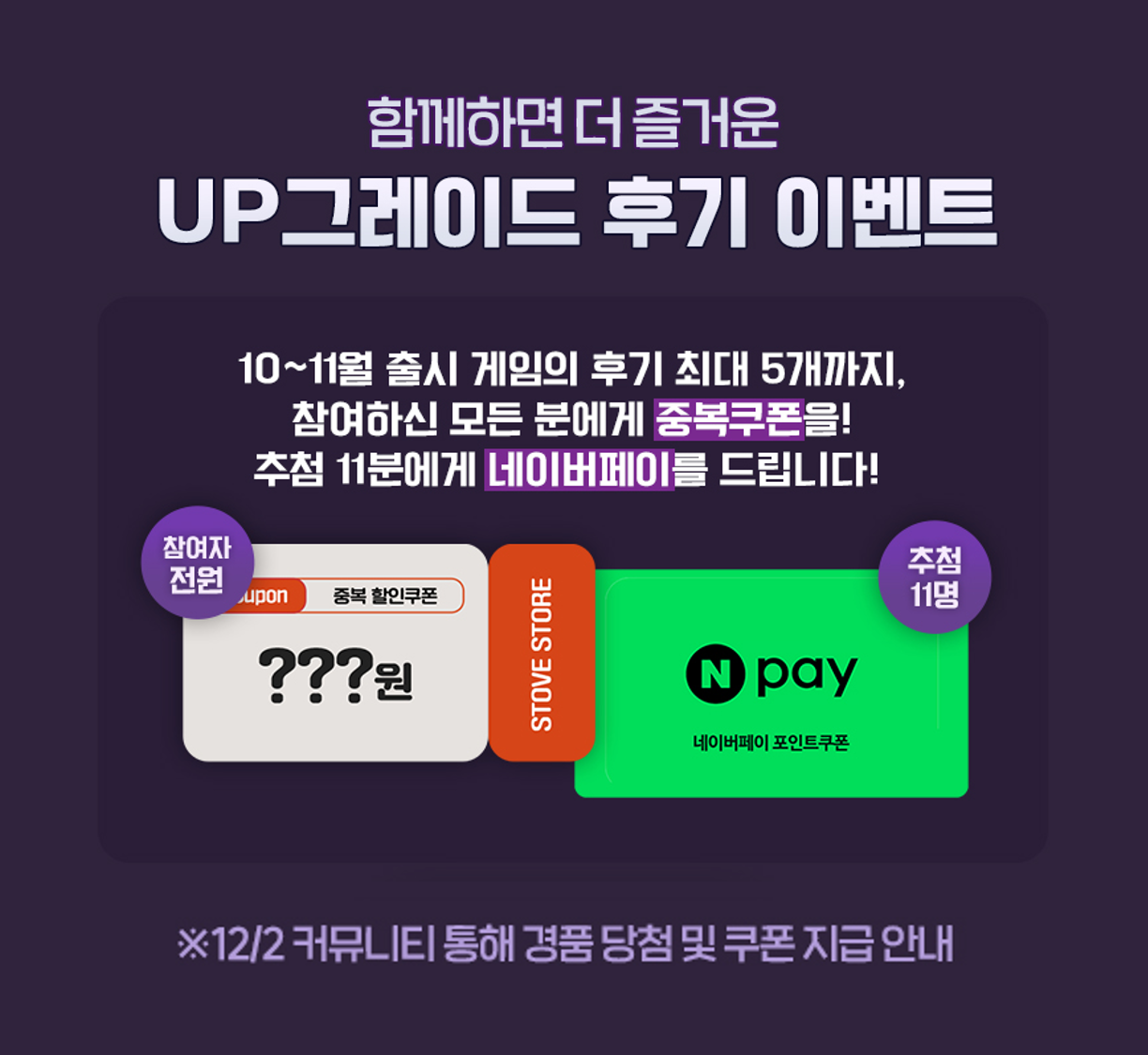 - 스토어 쿠폰: 12월 2일(화)부터 각 계정의 쿠폰함으로 순차 지급