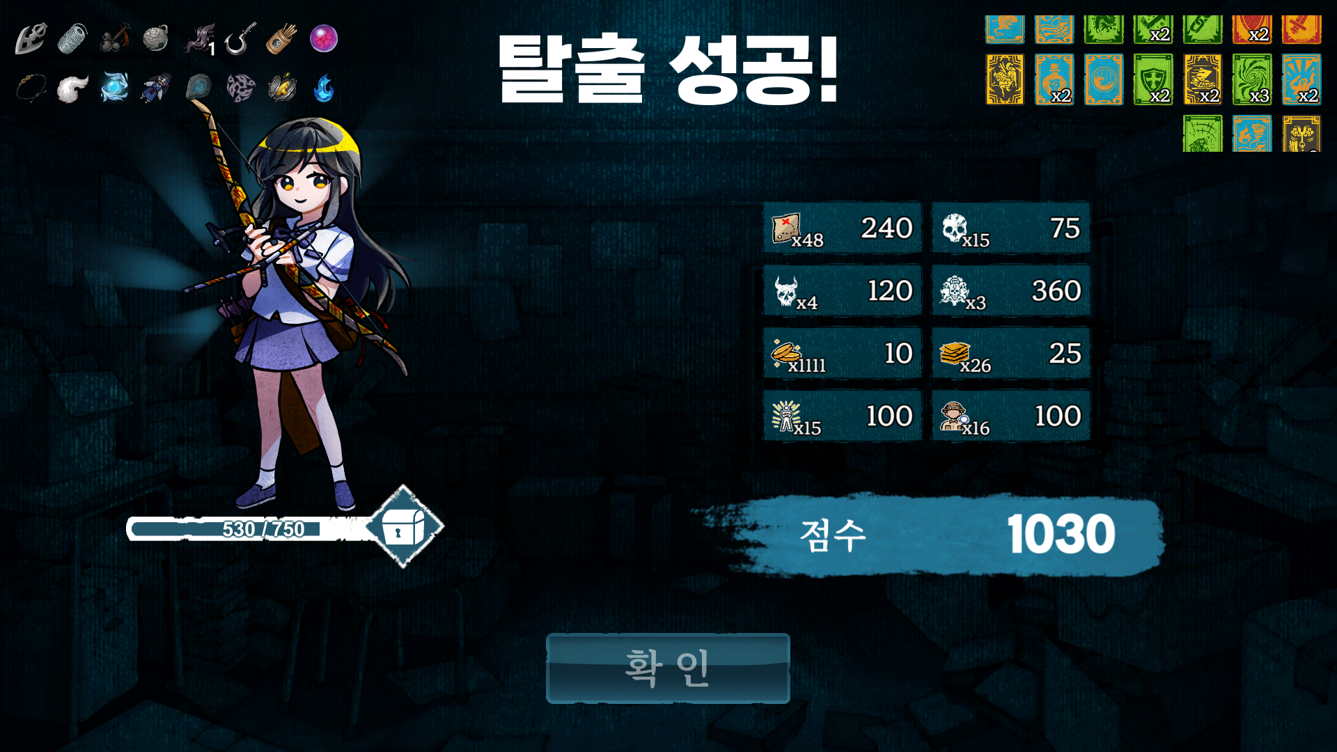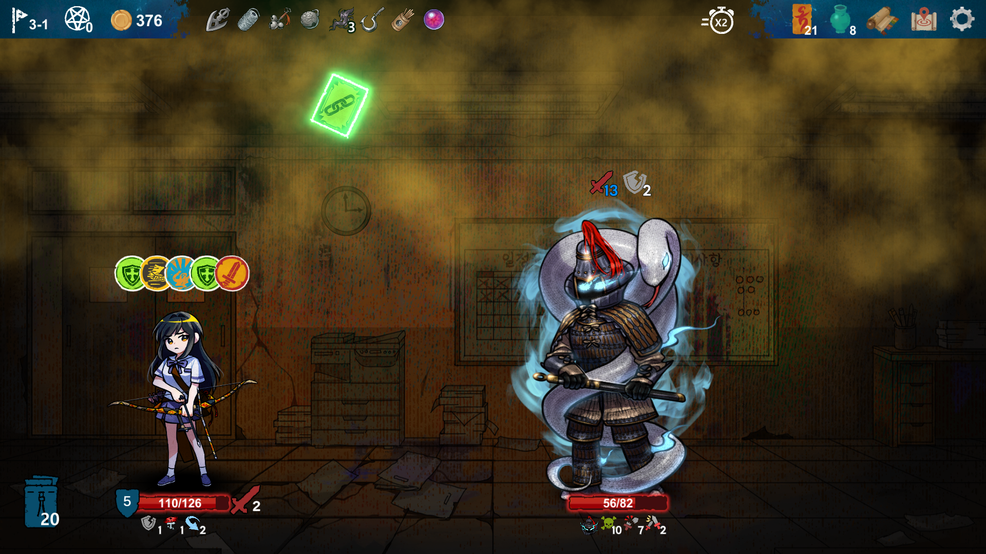 특히 관통, 회피, 억압 노랑 카드들을 상점에서 얻고 강화하니, 중간 보스나 최종 보스 전부 카운터가 가능했습니다.