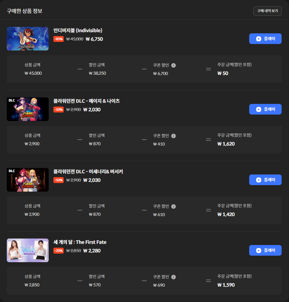 글상세💬 Small Talk [💬SmallTallk] 블랙 스토브 데이 마지막날 게임 구매 [2] 덤비면문다고 23/11/2025 02:51 AM 23/11/2025 11:51 AM (+09:00) view count 12 View MY HOME View Posts Report Share 오늘까지인 중복불가 할인 쿠폰이 많아서 한번에 몰아 사용했네요.어떤 게임을 구매할 지 고민하다가 막상 가격대가 있는 게임을 구매하려고 하니 마음이 안 가서조금 가격이 저렴한 게임들에 사용했네요.여러분도 오늘까지인 쿠폰 놓치지 마시고 꼭 사용하세요!그나저나 내 굿즈 랜덤박스는 언제 오지... Reply 2 alarm Notification has been disabled. Newest Newest By registration By recommendation To enter a comment Log In Please S105059962609777 23/11/2025 10:05 PM 24/11/2025 07:05 AM (+09:00) View MY HOME View Posts Report ㅊㅊ Chim 23/11/2025 05:48 AM 23/11/2025 02:48 PM (+09:00) View MY HOME View Posts Report Confirm Cancel Confirm