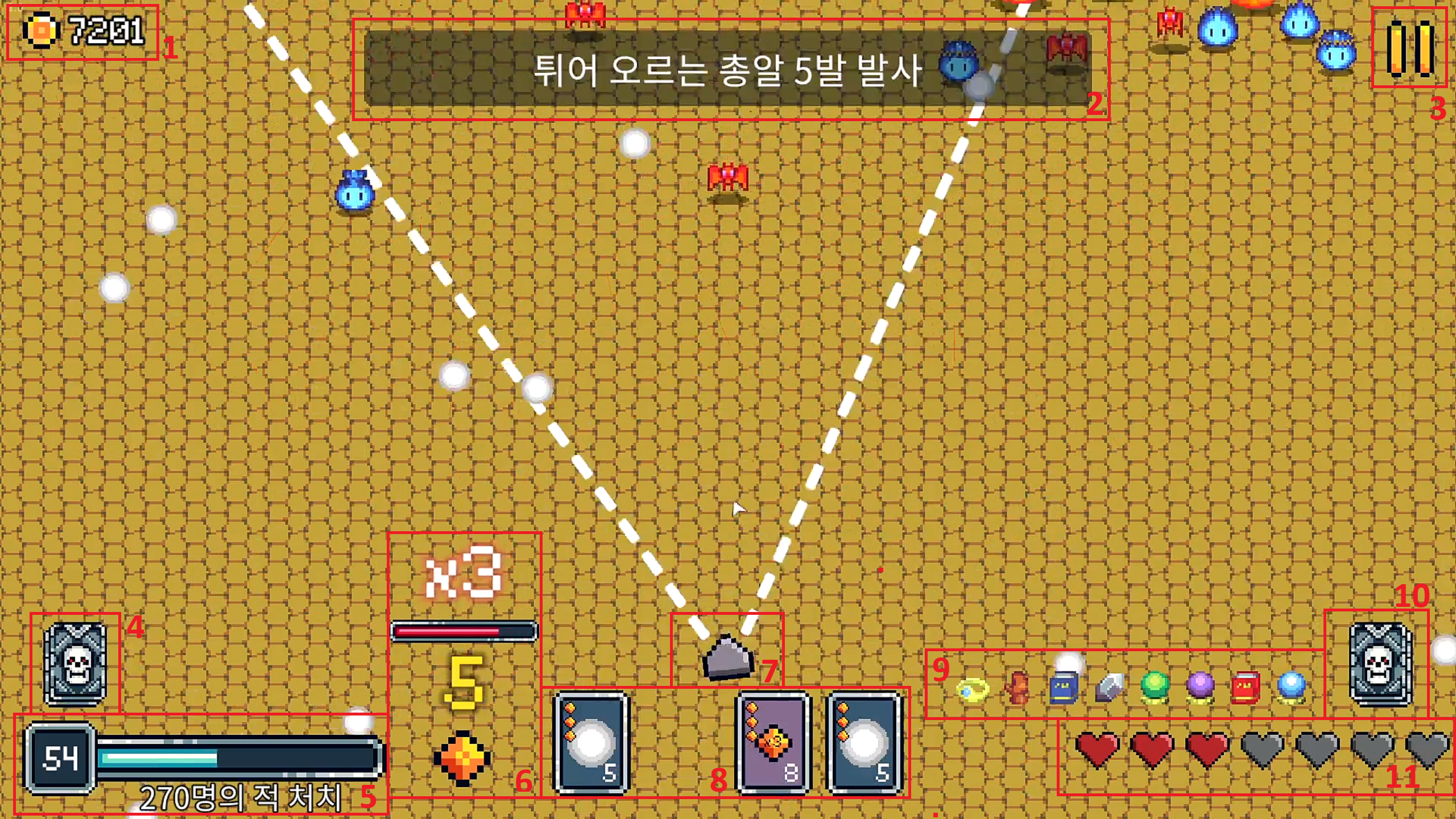 | 10. 무덤 | 11. 체력 | 중앙의 점선은 공격범위 |
