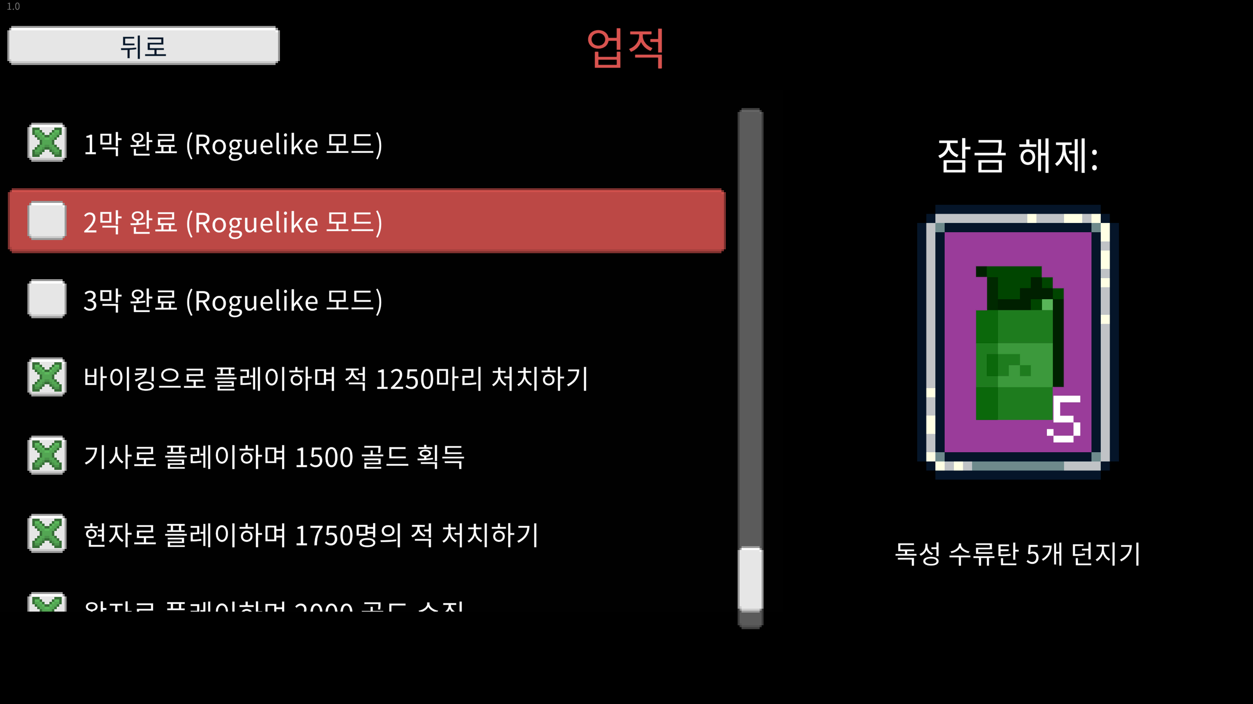 (로그라이크 모드는 버그로 인해 2막 이상을 플레이가 불가능하여 클리어를 하지 못했다)