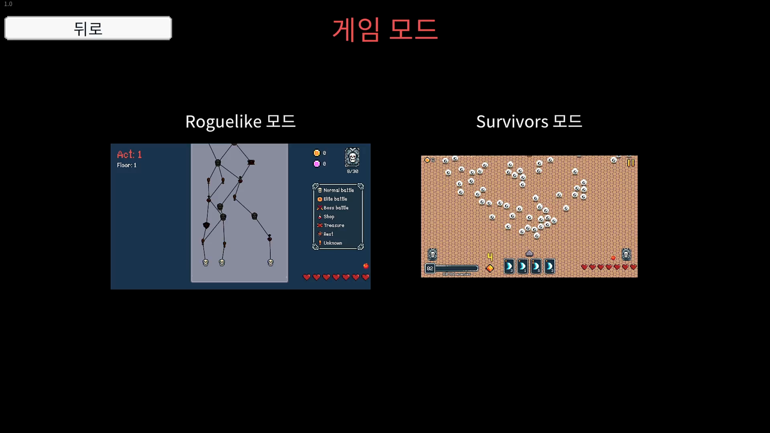 처음 플레이 할 때 로그라이크 모드와 서바이벌 모드가 있길래 서바이벌 모드는 뱀서류 같은 게임인가 했었는데 로그라이크 버전에서 그냥 맵이 없고 바로바로 다음 스테이지로 넘어가는 무한모드였다는...