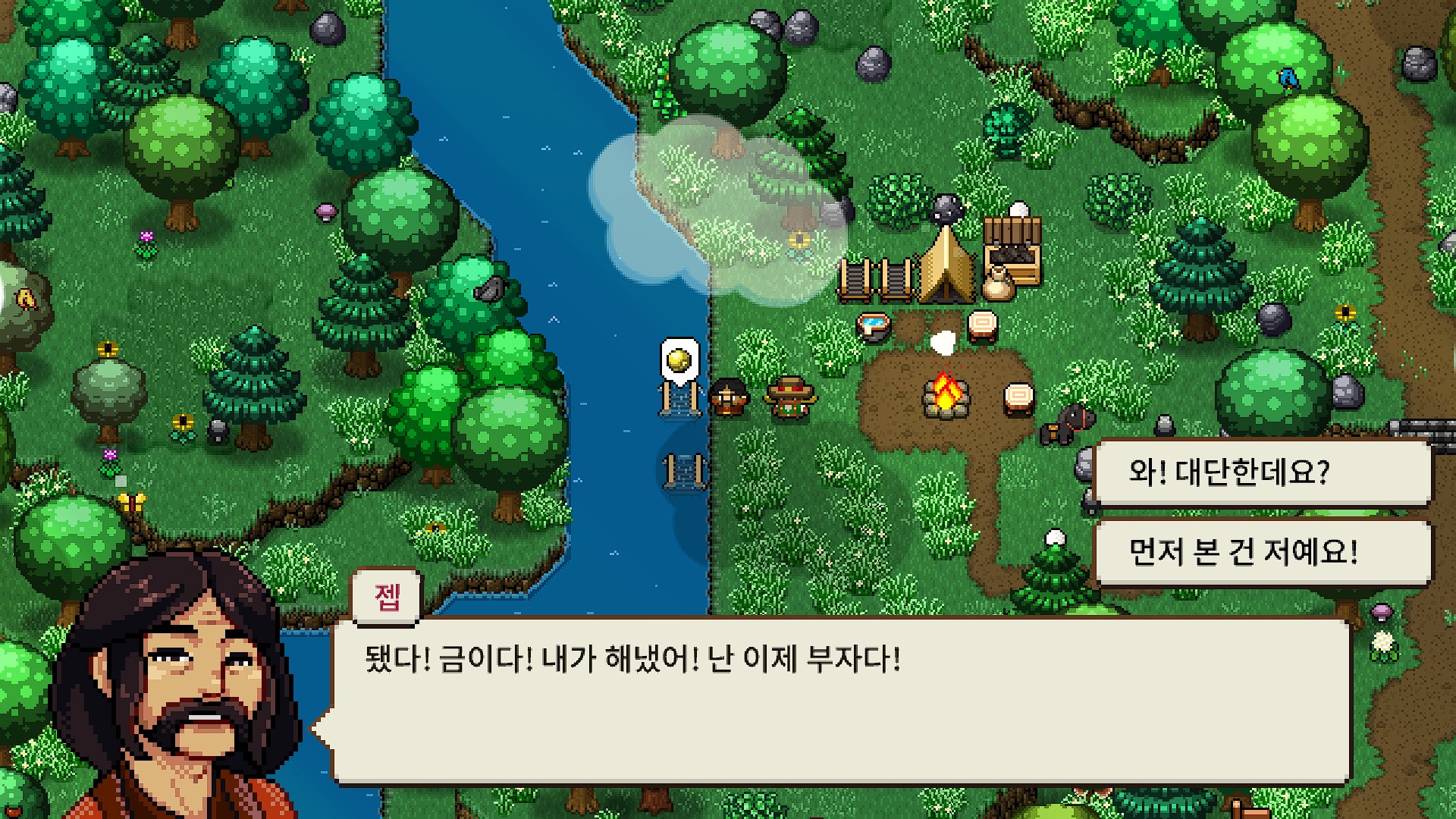 <주인공에게 사금 채취법을 알려주고>