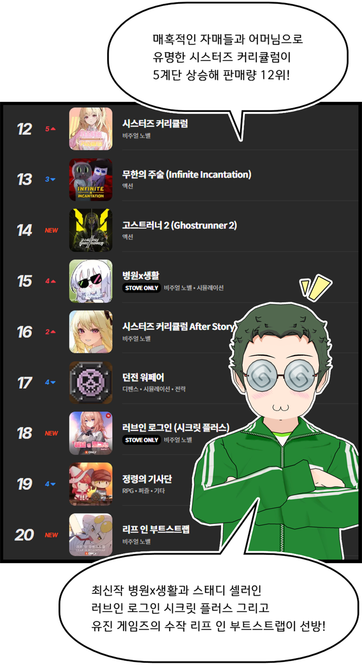🎮 Game Story's post List 하인철 View MY HOME View Posts 작성 시간 28/11/2025 +11 인디콘텐츠_ 산나비: 귀신 씌인 날 지스타2025 부스 후기 [10] 28/11/2025 28/11/2025 04:45 AM 쿠타르크 View MY HOME View Posts 작성 시간 28/11/2025 +10 2025년 11월 당신이 주목해야 할 인디게임 [5] 28/11/2025 28/11/2025 03:01 AM 고요한바위 View MY HOME View Posts 작성 시간 25/11/2025 +25 스토브 게임 순위 툰 91) 한글화된 명작 RPG '드로바' 스토브 상륙! 고딕 2D 버전 극찬! 순위권 초토화! [8] 25/11/2025 25/11/2025 02:55 PM 크루 한신애 View MY HOME View Posts 작성 시간 25/11/2025 +13 [11월 4주차] 한눈에 보는 주간 스토브스토어 [10] 25/11/2025 25/11/2025 02:43 PM DGPLAY View MY HOME View Posts 작성 시간 24/11/2025 +15 인디콘텐츠_뒷북후기_라이프 이즈 낫 오토(Life is not auto) [12] 24/11/2025 24/11/2025 04:21 PM