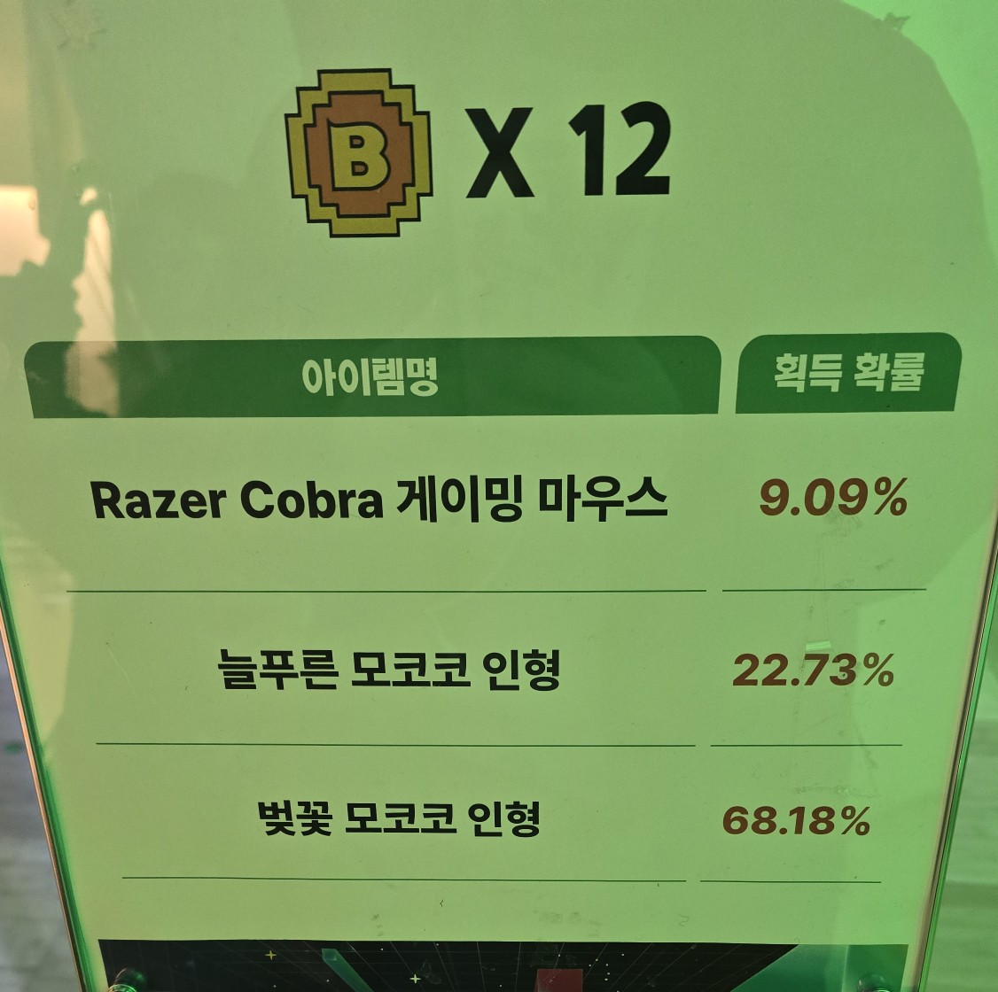 게임 부스에 눈치껏 줄 짧은 곳 위주로 쭉쭉 다니시고 코인 12개짜리나 8개짜리 뽑기 하시는걸 강력하게 추천하는 바입니다.
