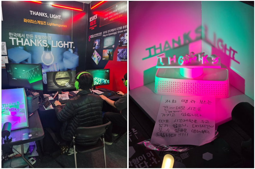 이곳은 레드존에 있는 땡스 라이트(THANKS, LIGHT)라는 게임 부스입니다.