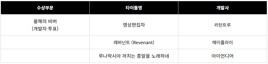 그리고 개발자 투표를 통해 가장 훌륭한 게임 3개가 선정되었습니다.