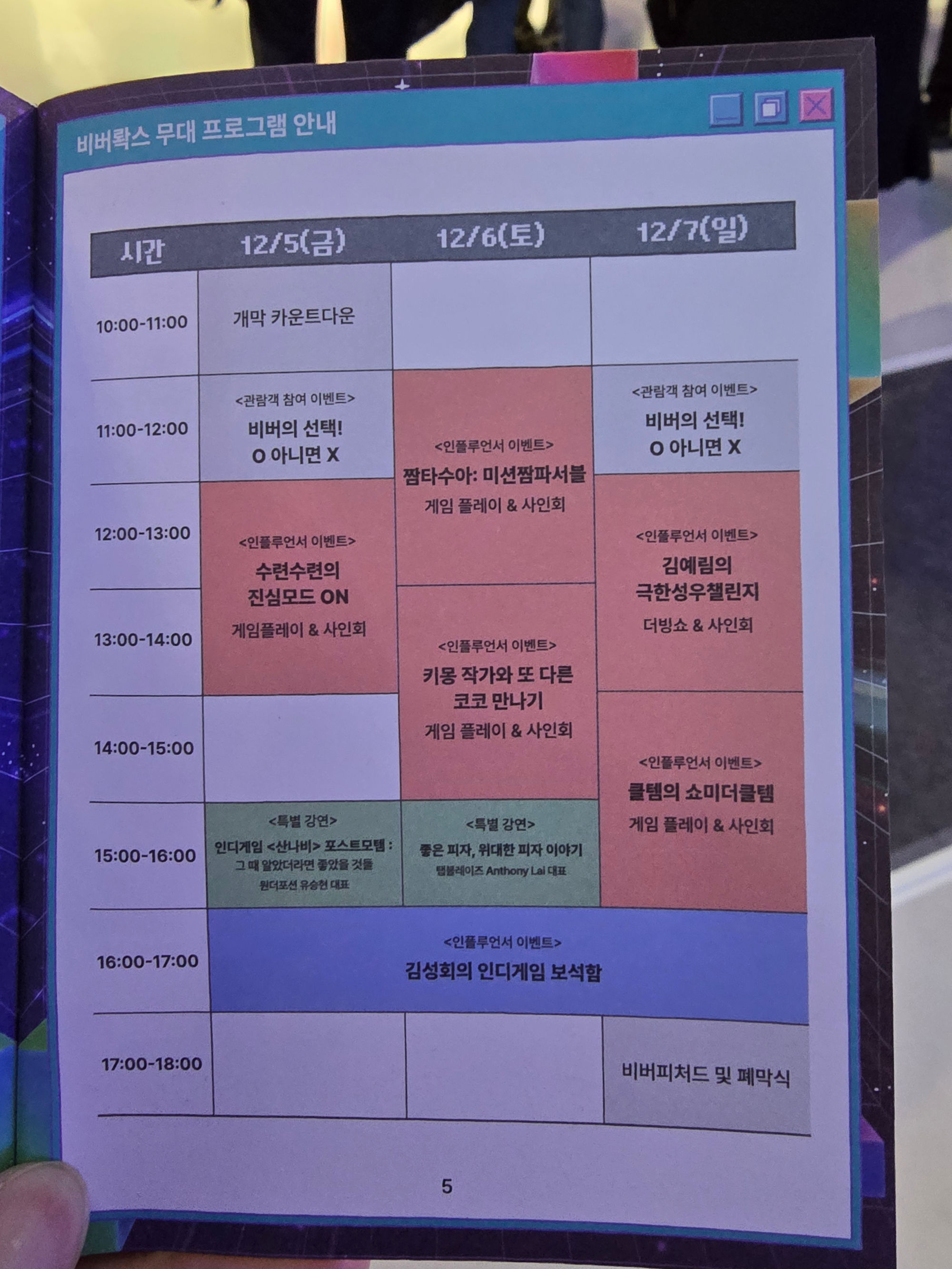 무대 프로그램 시간표는 가이드 & 퀘스트북 안에 잘 정리되어 있어서 편했는데요.
