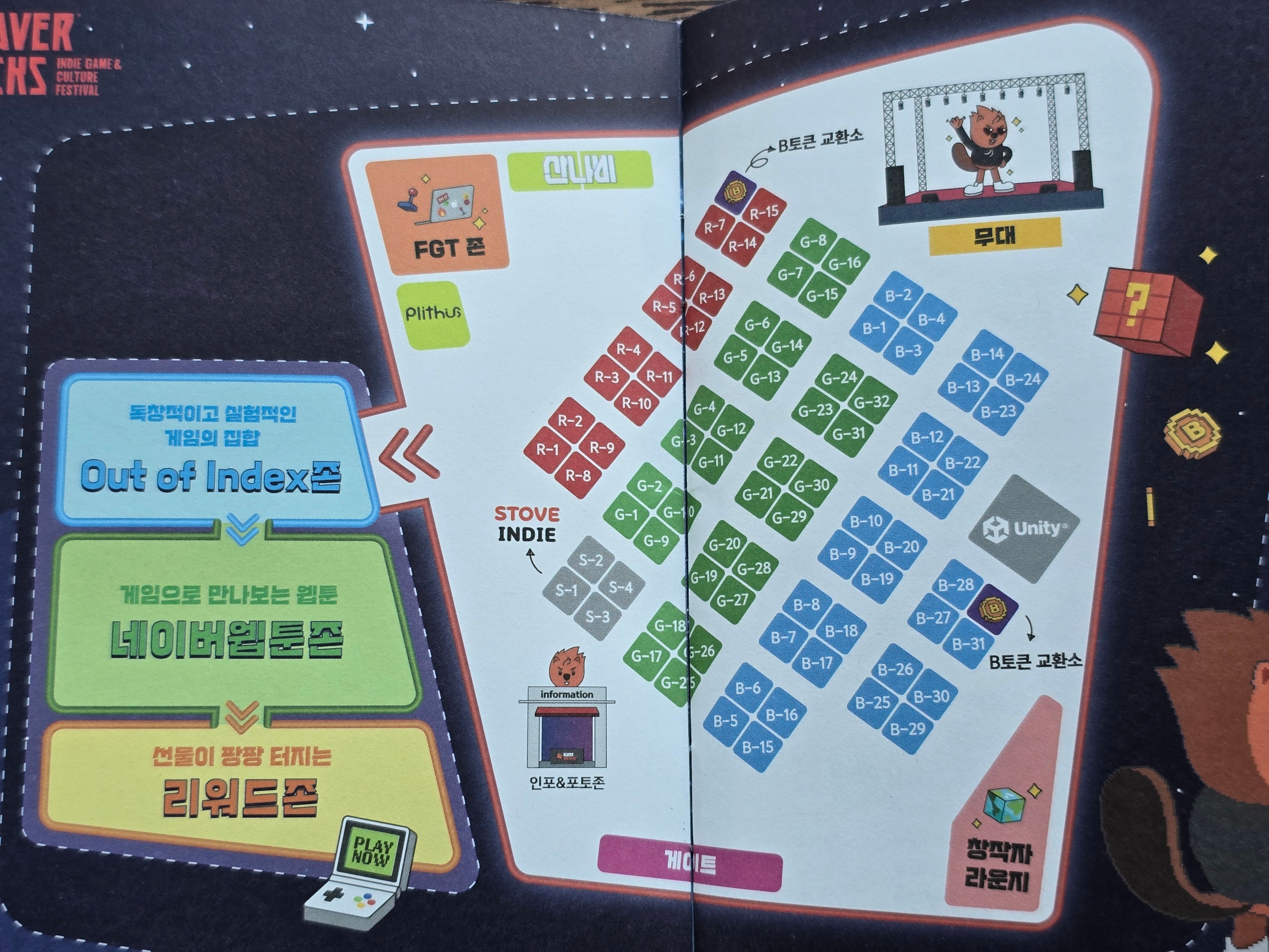 올해의 컨셉은 RGB인데, 게임 부스도 R, G, B 존으로 분류해두었습니다.