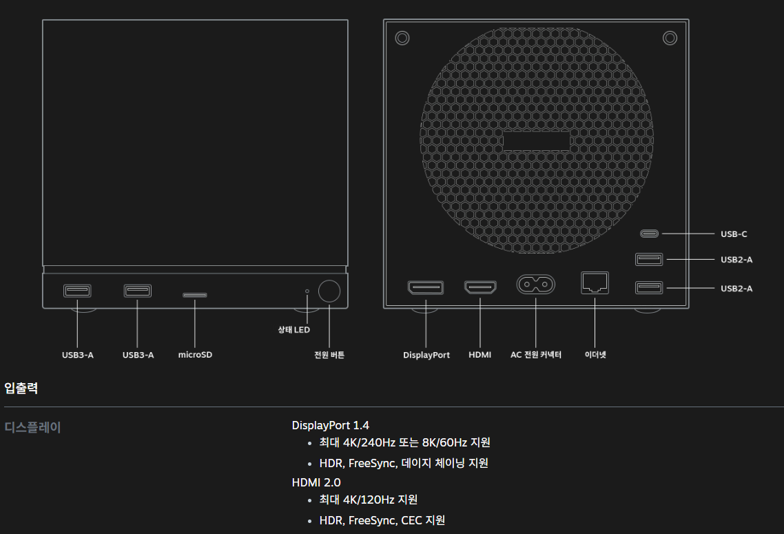 재미있게도 스팀 머신에는 HDMI 2.0 포트와 더불어, DisplayPort 1.4가 들어가 있습니다.