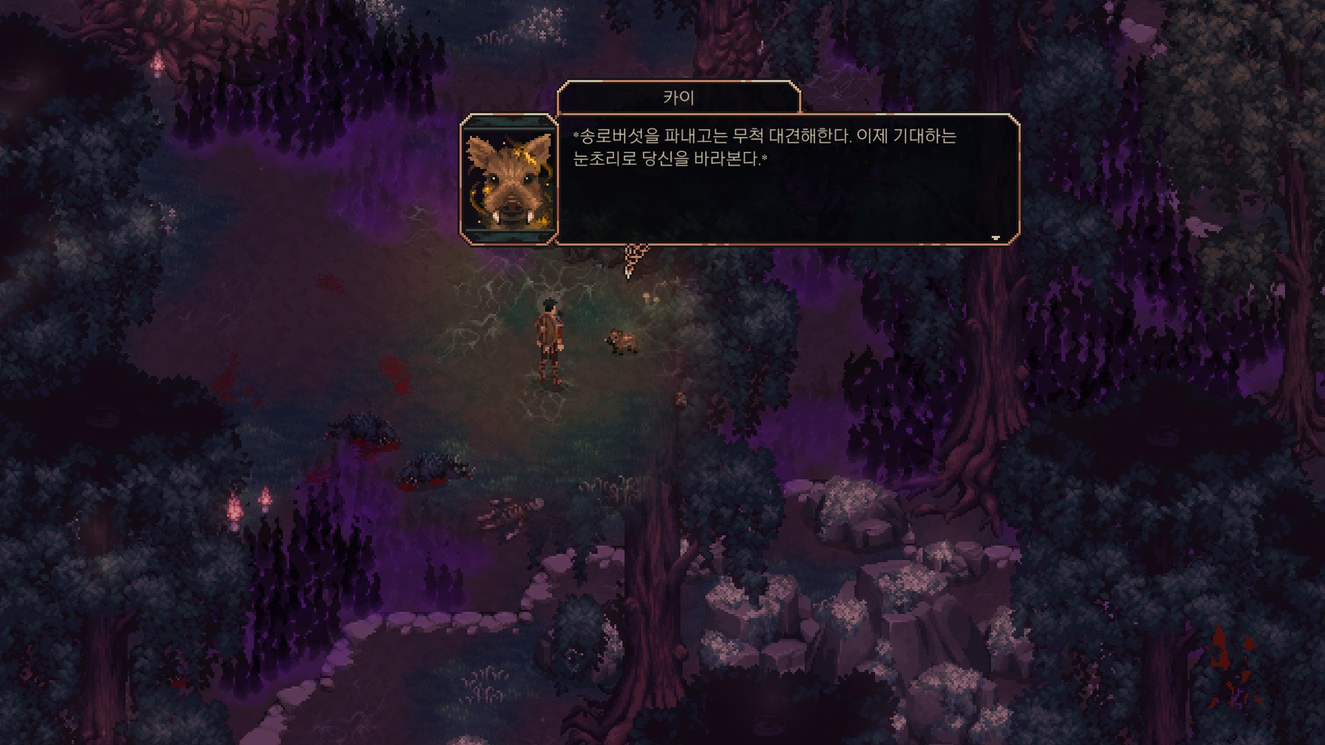 <그럼 멧돼지 해골과 멧돼지 가죽을 얻을 수 있습니다.>