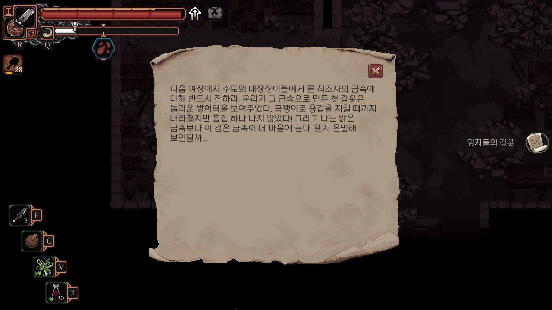 <그럼 유적으로 나오고 칼을 주울 수 있습니다.>