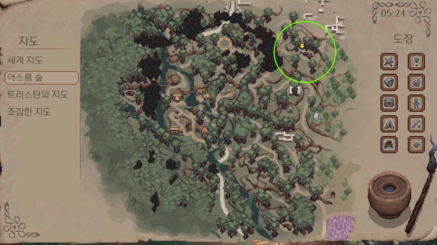 <용기의 미덕때 곰을 쓰러 뜨린 곳에서 남서쪽으로 가면>