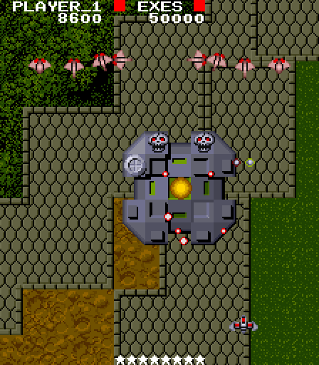 엑시드 엑시스의 경우 제비우스처럼 천만 점에 도달하면 집계가 멈추는 건 동일했지만 이쪽은 아예 게임을 강제로 종료시켜버리는 유형의 카운터 스톱을 보여주었습니다. 축하한다는 메시지와 함께 클리어 판정, 이후 종료되기 때문에 의도적으로 카운터 스톱을 게임 시스템으로 활용한 사례로도 볼 수 있죠.