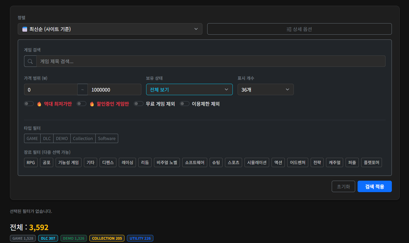 검색 필터는 제 입맛대로 넣었습니다.