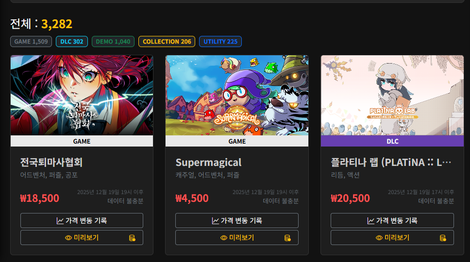 별다른 업데이트 요청이 없어서 당분간은 게임 정보 업데이트를 할 거 같습니다.