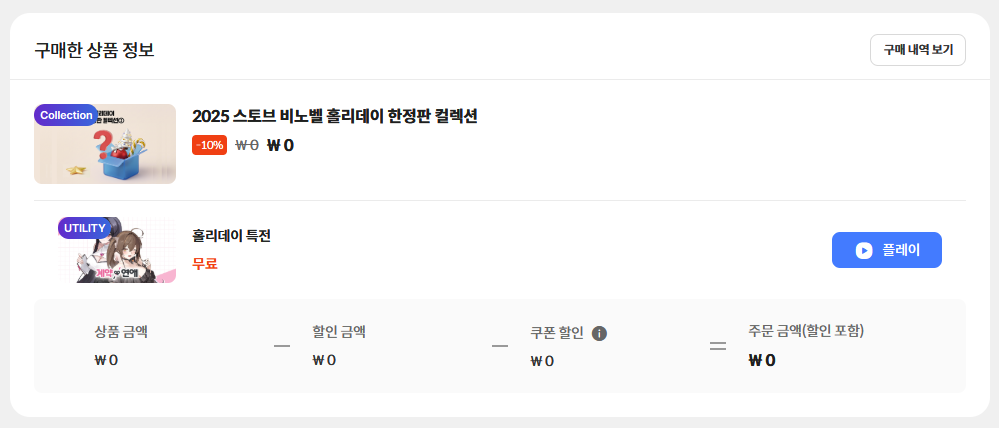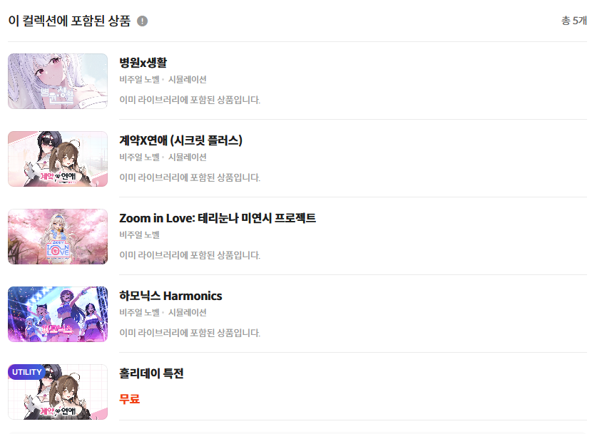 원래는 다 있으면 컬렉션 구매 자체가 안되는데 홀리데이 특전 때문에 가능한거 같아요