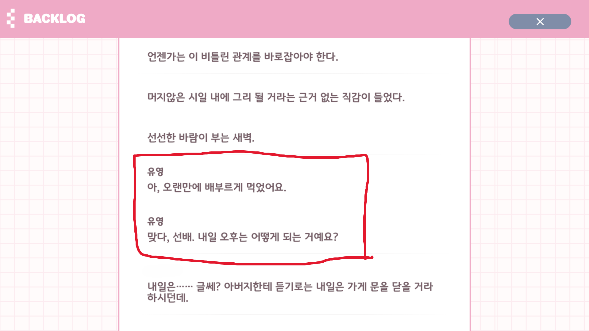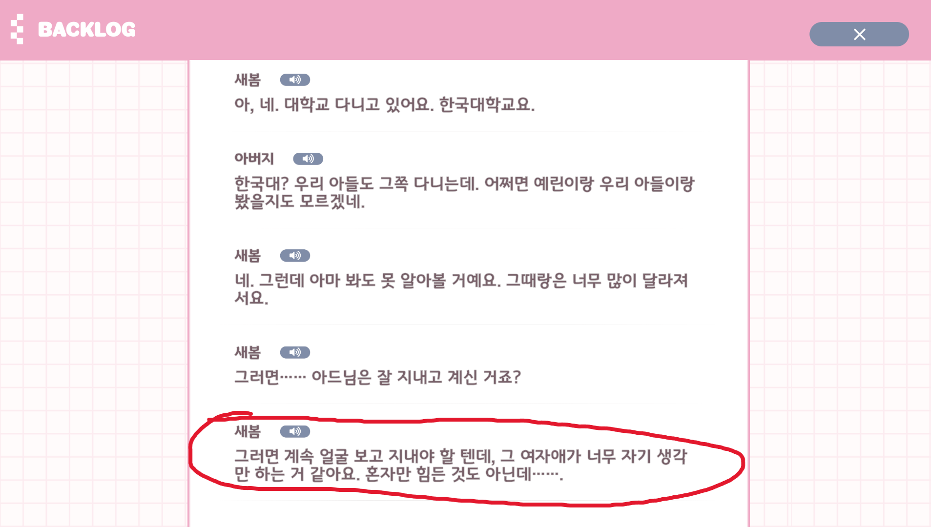 글상세Contract X Love (Secret Plus) [Free Topic] 다소 스포 주의) 인게임 오류 제보 STOVE70262756 27/12/2025 12:31 PM 27/12/2025 09:31 PM (+09:00) view count 34 View MY HOME View Posts Report Share 1. 새봄 파트공통이었는지 A루트였는지 기억은 잘 안 나지만 아버지와 새봄의 첫 대면 회상 씬에서 표시된 부분의 대사가 완전히 다른 대사로 나옵니다 매우 짧은 대사였는데 어떤 곳이랑 꼬였는진 못 찾았습니다.2. 유영 루트2-1) 유영 루트 도중 아버지와의 대화에서 해당 부분의 대사가 잘못 출력 됩니다2-2) 표시해둔 유영의 대사에 보이스가 존재하지 않고 다음 사진인 새봄과 가을의 대사에서 유영의 보이스가 나오며, 계속해서 두 줄씩 밀린 보이스가 나옵니다 해당 부분은 23B 파트입니다 Reply 0 alarm Notification has been disabled. Newest Newest By registration By recommendation To enter a comment Log In Please Confirm Cancel Confirm