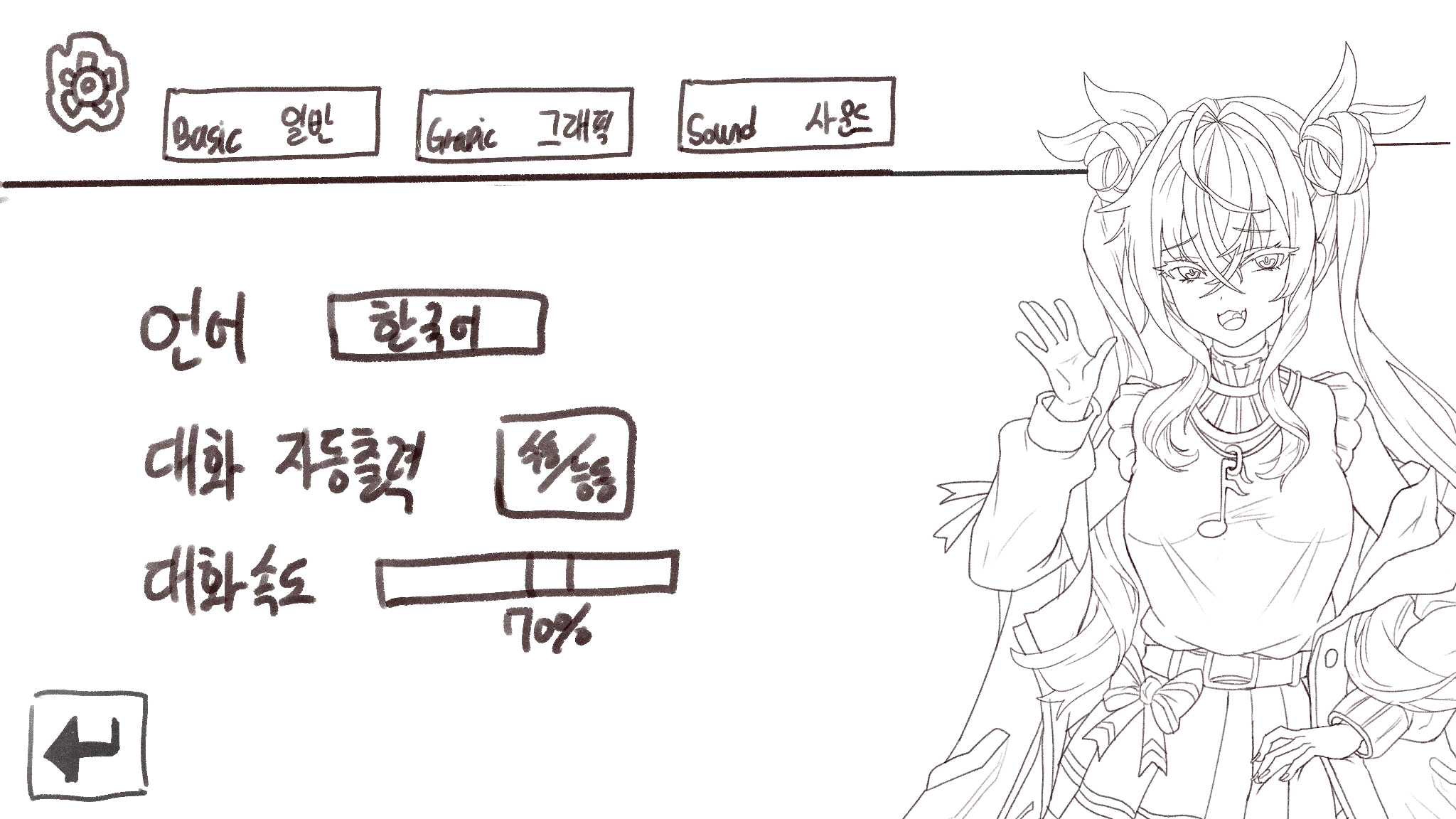 타 비주얼노벨 UI보단 제 기준에서 플레이하기 편하게 프리팹을 스케치 했습니다.