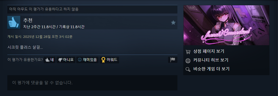(리뷰만 보면 그의 뭐 심야의 회랑 후보감...)