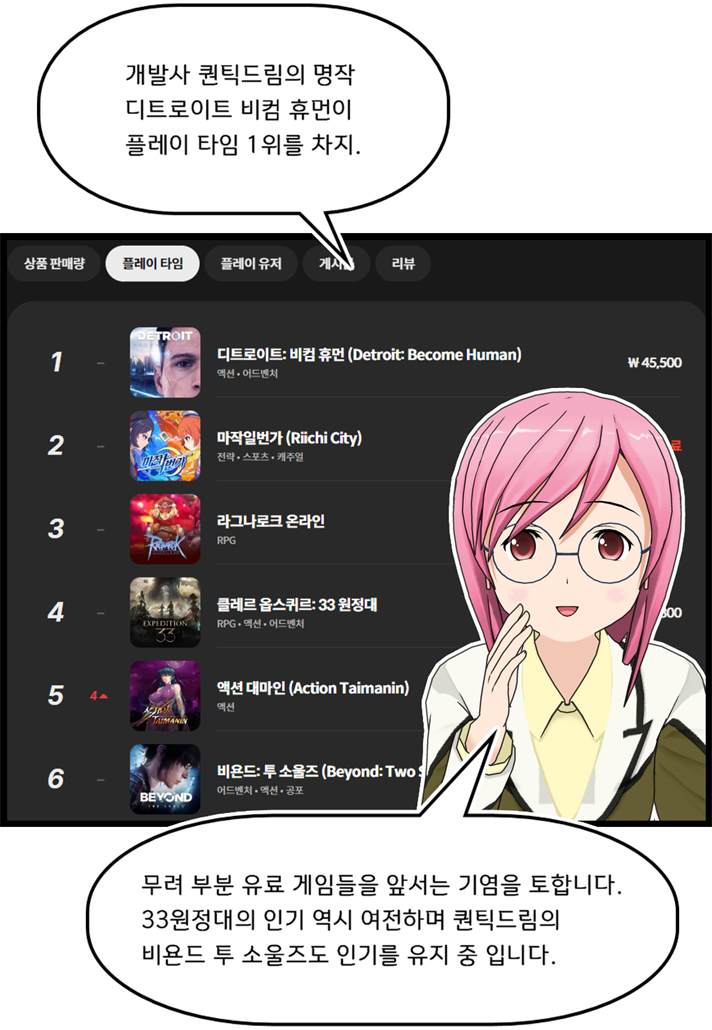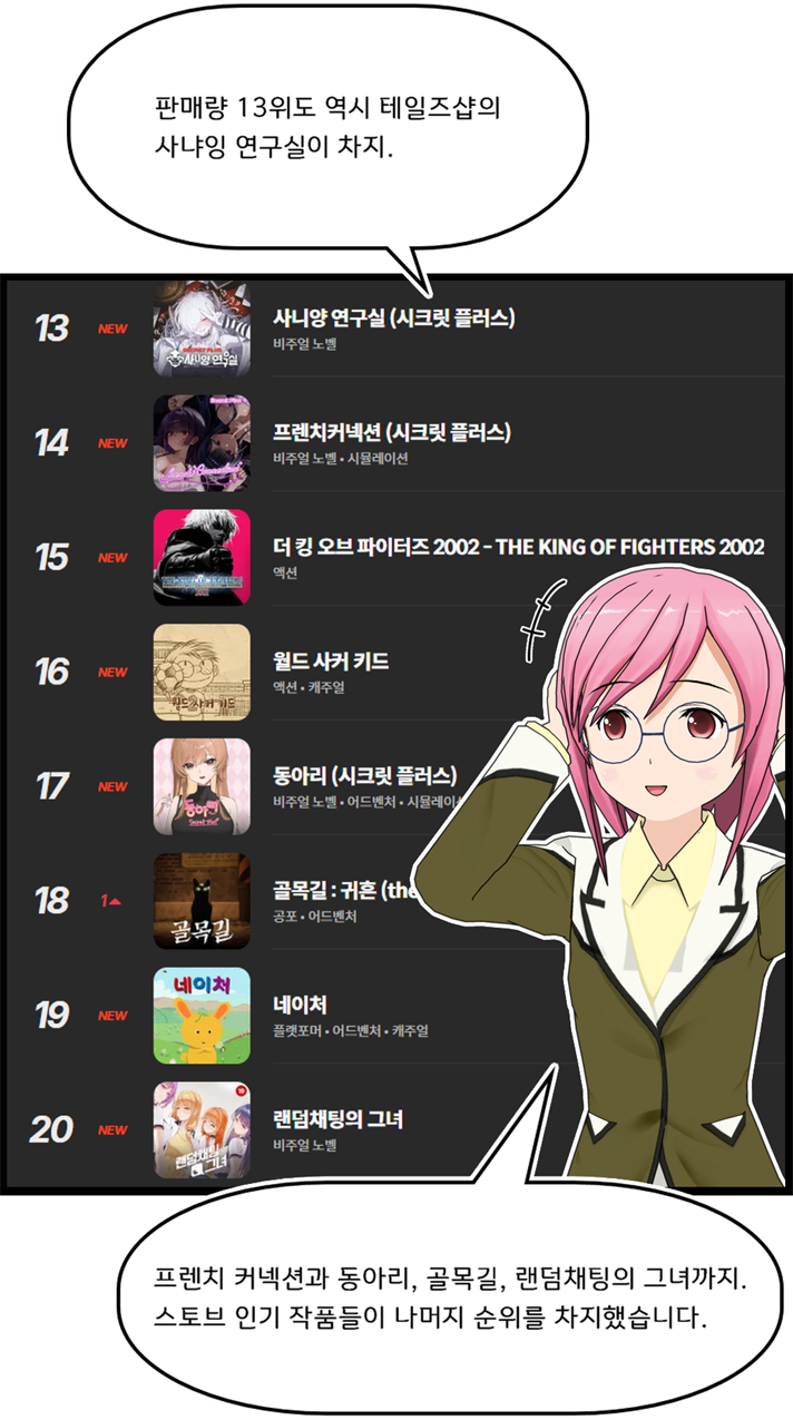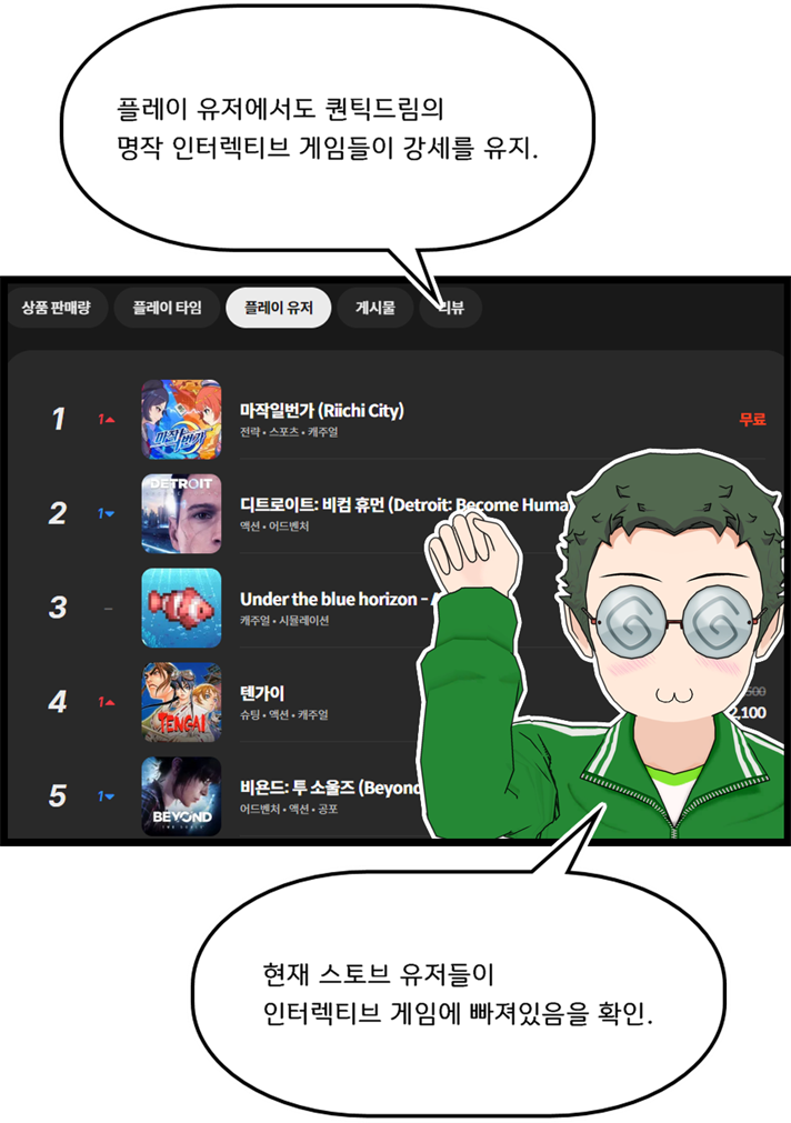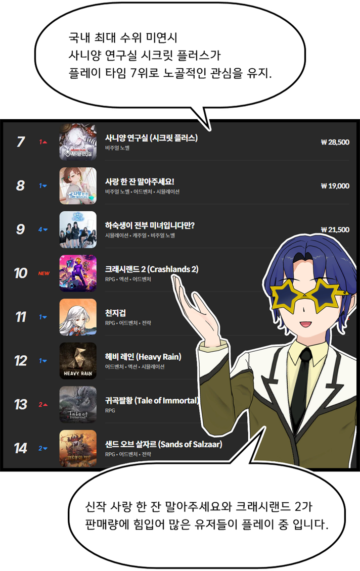 글상세🎮 Game Story 스토브 게임 순위 툰 98) 사랑과 인생, 무협과 술을 논하는 '사랑 한 잔 말아주세요!' 신년초 가득채운 인기! [17] 고요한바위 13/01/2026 10:28 PM 14/01/2026 07:28 AM (+09:00) view count 616 View MY HOME View Posts Report Share #스토브게임순위툰 #퀀틱드림 #비욘드투소울즈 #헤비레인 #디트로이트비컴휴먼#사랑한잔말아주세요 #크래시랜드2 #오픈월드생존제작 #테라리아라이크#테일즈샵 #kof2002 #썸썸편의점 #무협게임 #무협미연시 Reply 17 alarm Notification has been disabled. Newest Newest By registration By recommendation To enter a comment Log In Please 씨투르 06/02/2026 03:26 AM 06/02/2026 12:26 PM (+09:00) View MY HOME View Posts Report Nice! 시작과끝1 30/01/2026 02:33 AM 30/01/2026 11:33 AM (+09:00) View MY HOME View Posts Report c 190954681 24/01/2026 03:28 PM View MY HOME View Posts Report 숑이당 24/01/2026 05:41 AM 24/01/2026 02:41 PM (+09:00) View MY HOME View Posts Report Nice! STVE36365 23/01/2026 06:44 PM 24/01/2026 03:44 AM (+09:00) View MY HOME View Posts Report 가축 23/01/2026 07:34 AM 23/01/2026 04:34 PM (+09:00) View MY HOME View Posts Report S1130600821183038 22/01/2026 06:37 PM 23/01/2026 03:37 AM (+09:00) View MY HOME View Posts Report 씨투르 19/01/2026 01:51 AM 19/01/2026 10:51 AM (+09:00) View MY HOME View Posts Report Nice! 리히리히리 19/01/2026 01:42 AM 19/01/2026 10:42 AM (+09:00) View MY HOME View Posts Report Nice! 리히리히리 16/01/2026 11:14 PM 17/01/2026 08:14 AM (+09:00) View MY HOME View Posts Report Nice! S1759414746439912 16/01/2026 01:43 PM 16/01/2026 10:43 PM (+09:00) View MY HOME View Posts Report Nice! 로스팅365 16/01/2026 05:32 AM 16/01/2026 02:32 PM (+09:00) View MY HOME View Posts Report 노라조조 14/01/2026 11:08 PM 15/01/2026 08:08 AM (+09:00) View MY HOME View Posts Report S7651504582609709 14/01/2026 05:13 PM 15/01/2026 02:13 AM (+09:00) View MY HOME View Posts Report Chim 14/01/2026 11:29 AM 14/01/2026 08:29 PM (+09:00) View MY HOME View Posts Report balro 14/01/2026 10:32 AM 14/01/2026 07:32 PM (+09:00) View MY HOME View Posts Report 덤비면문다고 14/01/2026 01:05 AM 14/01/2026 10:05 AM (+09:00) View MY HOME View Posts Report Confirm Cancel Confirm