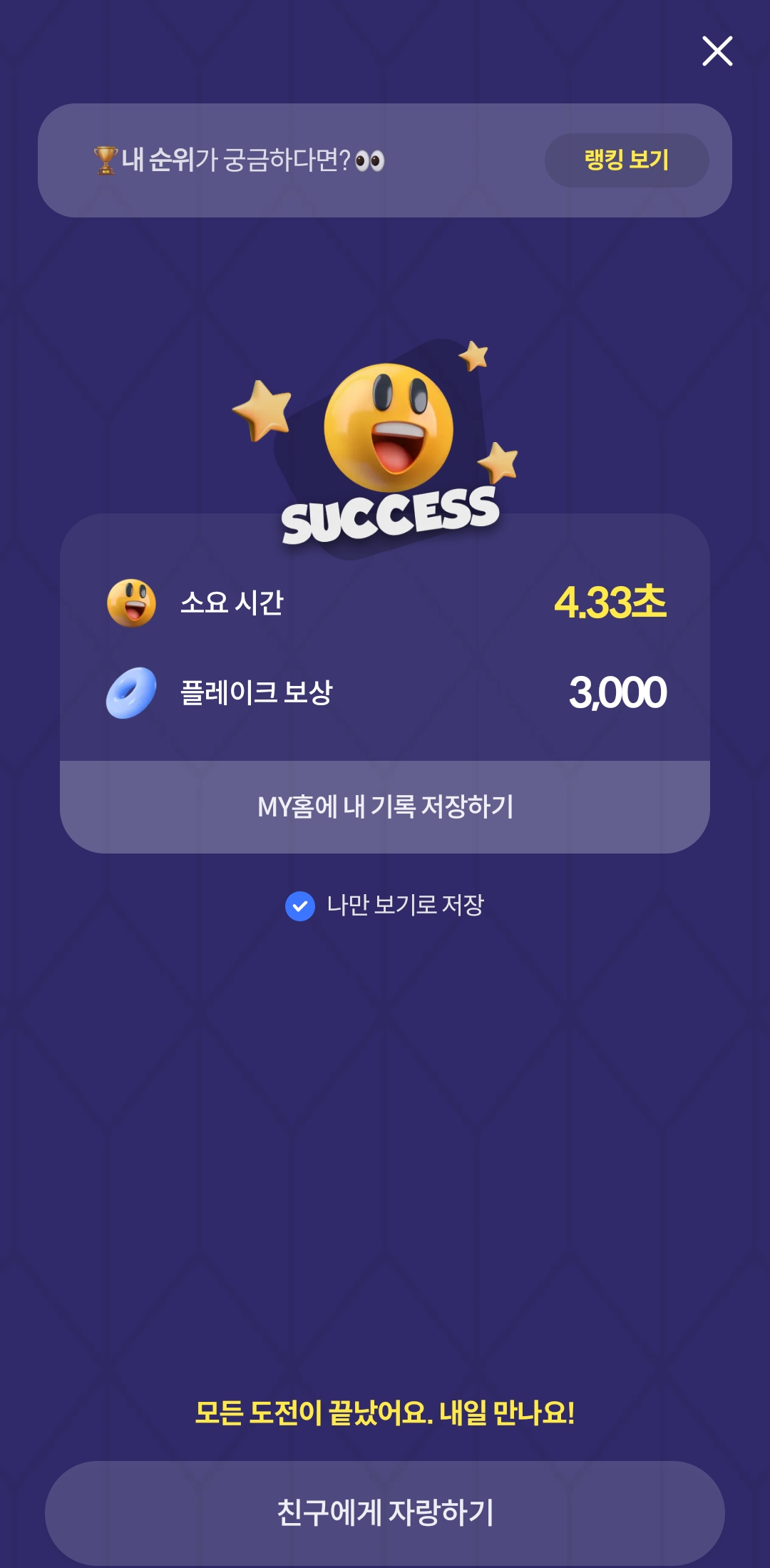 글상세😁 Free Talk [FreeTalk] 200만 나오던 미니 게임에서 드디어! [31] balro 17/01/2026 02:18 AM 17/01/2026 11:18 AM (+09:00) view count 26 View MY HOME View Posts Report Share 3000이란 숫자를 보게 되는군요. 예전엔 운 좋으면 5만도 얻고 그랬는데, 이젠 1000 이상만 나와줘도 기분이 좋습니다. 다른 분들도 오늘 미니 게임 대박 나시길 바랍니다! 10000 이상 나오시면 더 대박! Reply 31 alarm Notification has been disabled. Newest Newest By registration By recommendation To enter a comment Log In Please S073801281530608 01/02/2026 04:40 PM 02/02/2026 01:40 AM (+09:00) View MY HOME View Posts Report S1767365188525011 31/01/2026 02:56 PM 31/01/2026 11:56 PM (+09:00) View MY HOME View Posts Report S1759414746439912 29/01/2026 11:06 AM 29/01/2026 08:06 PM (+09:00) View MY HOME View Posts Report Nice! 씨투르 20/01/2026 02:47 AM 20/01/2026 11:47 AM (+09:00) View MY HOME View Posts Report Nice! balro Written by 20/01/2026 03:18 AM 20/01/2026 12:18 PM (+09:00) View MY HOME View Posts Report @씨투르 톰78906999 20/01/2026 12:44 AM 20/01/2026 09:44 AM (-NaN:NaN) View MY HOME View Posts Report Nice! balro Written by 20/01/2026 01:07 AM 20/01/2026 10:07 AM (+09:00) View MY HOME View Posts Report @톰78906999 Report Report @S47305046868782 리히리히리 18/01/2026 01:26 AM 18/01/2026 10:26 AM (+09:00) View MY HOME View Posts Report Nice! balro Written by 18/01/2026 02:46 AM 18/01/2026 11:46 AM (+09:00) View MY HOME View Posts Report @리히리히리 이콘클 18/01/2026 12:24 AM 18/01/2026 09:24 AM (-NaN:NaN) View MY HOME View Posts Report Nice! balro Written by 18/01/2026 02:45 AM 18/01/2026 11:45 AM (+09:00) View MY HOME View Posts Report @이콘클 크라우프2 17/01/2026 04:37 PM 18/01/2026 01:37 AM (+09:00) View MY HOME View Posts Report balro Written by 17/01/2026 04:48 PM 18/01/2026 01:48 AM (+09:00) View MY HOME View Posts Report S084550992219513 17/01/2026 04:17 PM 18/01/2026 01:17 AM (+09:00) View MY HOME View Posts Report balro Written by 17/01/2026 04:47 PM 18/01/2026 01:47 AM (+09:00) View MY HOME View Posts Report 비주얼노벨최고 17/01/2026 02:46 PM 17/01/2026 11:46 PM (+09:00) View MY HOME View Posts Report cc Report @비주얼노벨최고 엔젤건 17/01/2026 02:02 PM 17/01/2026 11:02 PM (+09:00) View MY HOME View Posts Report ㅊㅊ Report @엔젤건 Chim 17/01/2026 11:09 AM 17/01/2026 08:09 PM (+09:00) View MY HOME View Posts Report balro Written by 17/01/2026 01:26 PM 17/01/2026 10:26 PM (+09:00) View MY HOME View Posts Report @Chim 내이상형편수희 17/01/2026 11:06 AM 17/01/2026 08:06 PM (+09:00) View MY HOME View Posts Report balro Written by 17/01/2026 01:26 PM 17/01/2026 10:26 PM (+09:00) View MY HOME View Posts Report @내이상형편수희 브라키움 17/01/2026 08:06 AM 17/01/2026 05:06 PM (+09:00) View MY HOME View Posts Report balro Written by 17/01/2026 08:52 AM 17/01/2026 05:52 PM (+09:00) View MY HOME View Posts Report STVE36365 17/01/2026 07:31 AM 17/01/2026 04:31 PM (+09:00) View MY HOME View Posts Report balro Written by 17/01/2026 07:46 AM 17/01/2026 04:46 PM (+09:00) View MY HOME View Posts Report 바드냥냥이 17/01/2026 07:11 AM 17/01/2026 04:11 PM (+09:00) View MY HOME View Posts Report ㄷㄷㄷㄷ balro Written by 17/01/2026 07:46 AM 17/01/2026 04:46 PM (+09:00) View MY HOME View Posts Report Confirm Cancel Confirm