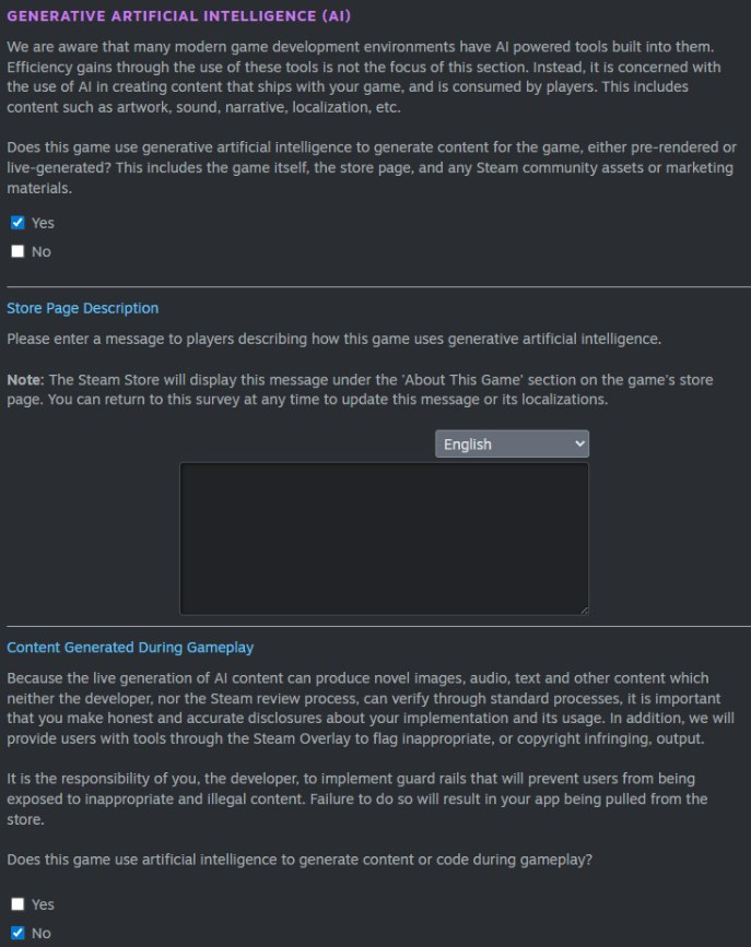 기존에는 “이 게임은 AI를 사용했습니까?”라는 질문이 해석에 따라 지나치게 광범위해질 수 있었다면,