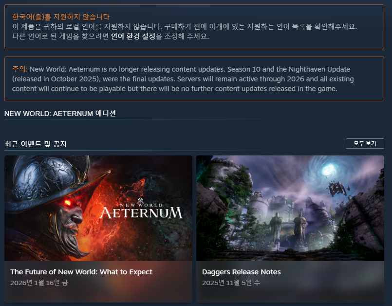현재 스팀에서는 이미 판매가 중단되었으며, 유료 재화 판매 종료와 함께 서버 종료 일정도 공지되었습니다.