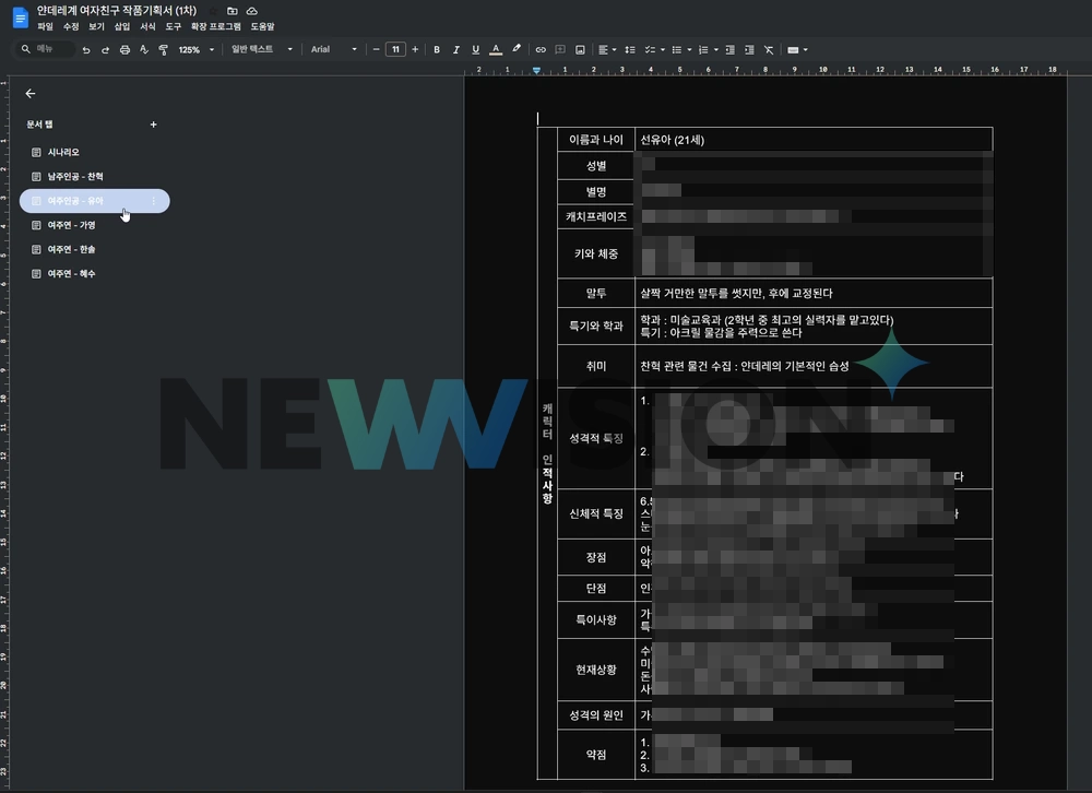첫번째는 비주얼노벨 시나리오 및 간단한 컨셉아트를 짰습니다