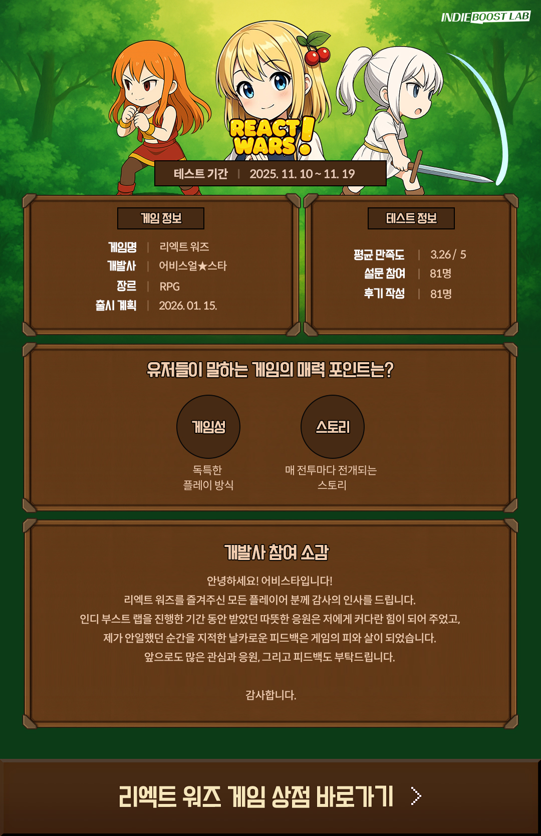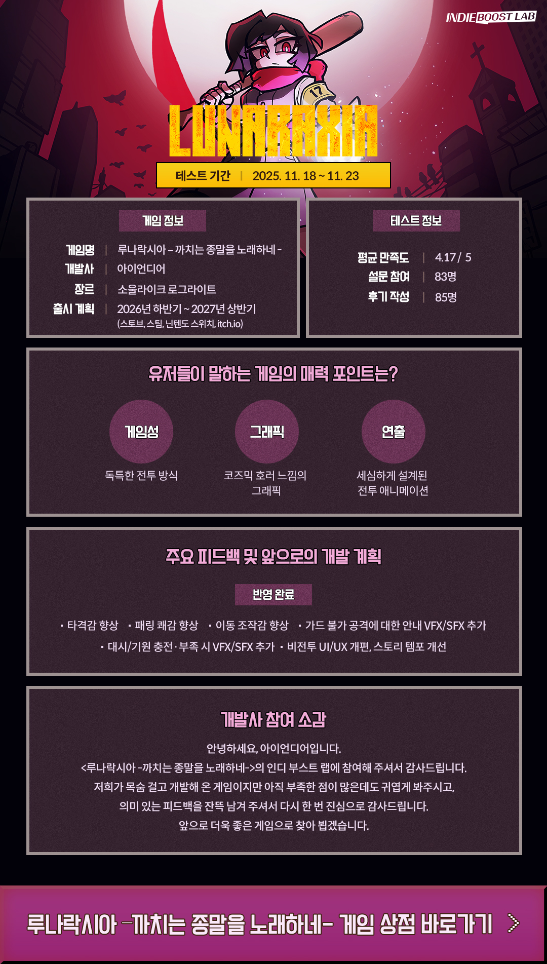 [LabNews] INDIE BOOST LAB 참여 게임 결과 요약 - 루나락시아, 리엑트 워즈, 블러드 하이! [11]