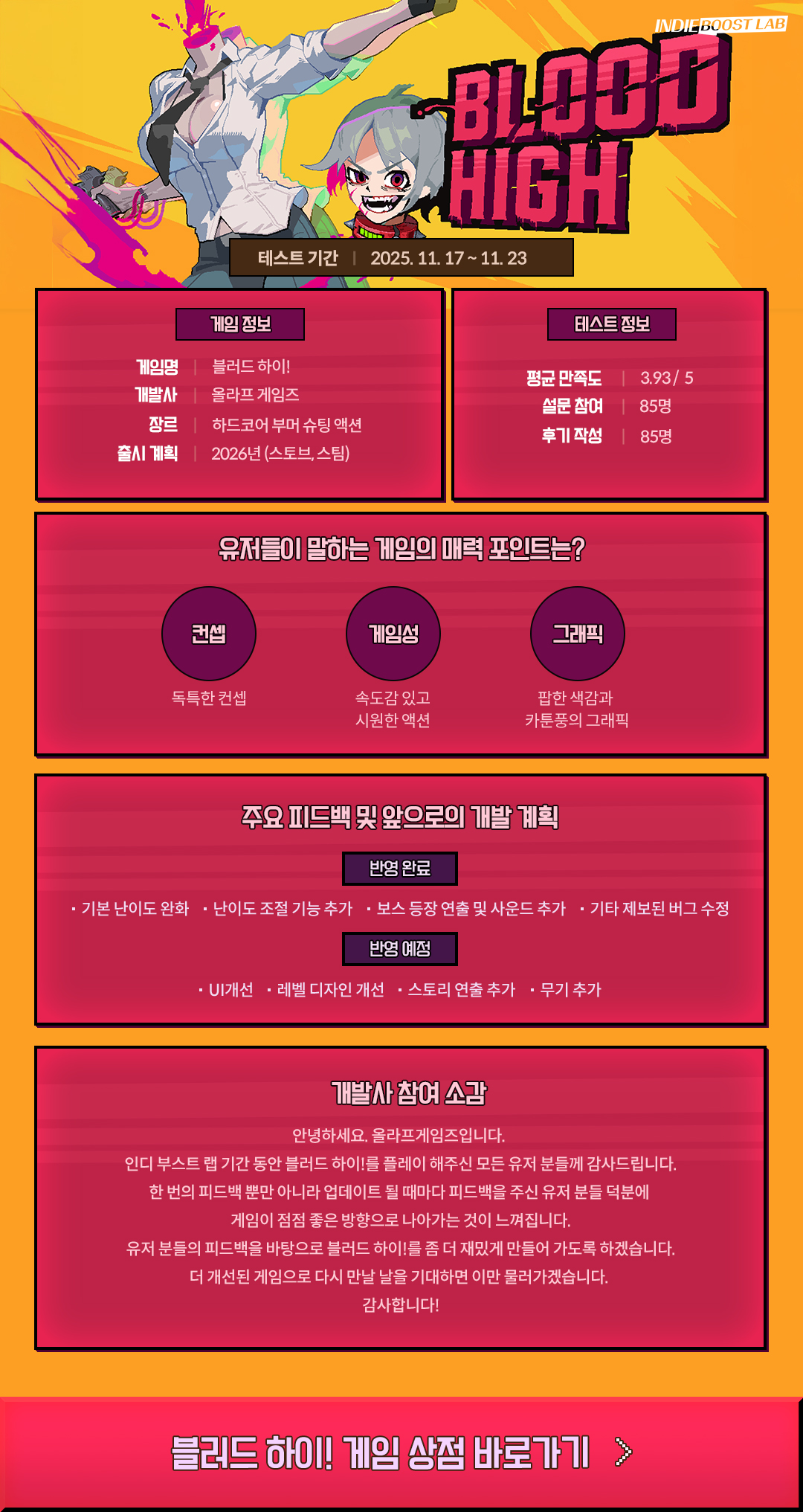 INDIE BOOST LAB을 통해 플레이하고 피드백 했던 게임!