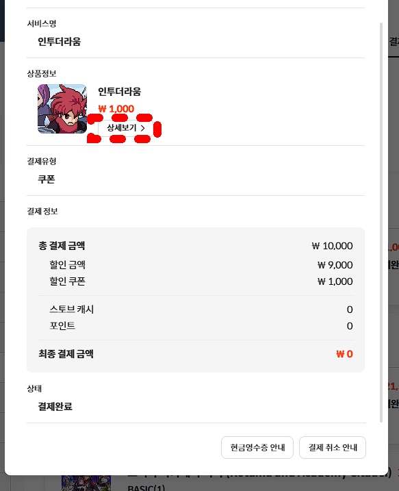 7. 그럼 결제 취소 요청이라고 뜨고 이걸 클릭할경우 결제 취소 요청금액이 뜹니다.