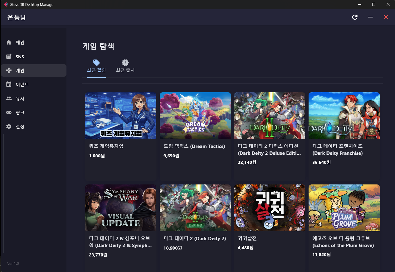 - 게임은 최근 할인 리스트와, 신규게임 정보를 바로 확인 가능.