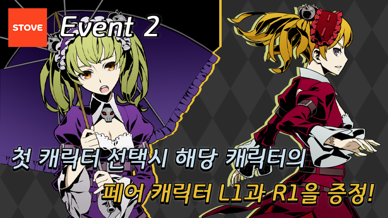 계성 생성후 첫 캐릭터 선택시 해당 캐릭터의 페어 캐릭터를 L1,R1을 각각 1장씩 제공하는 이벤트 입니다.