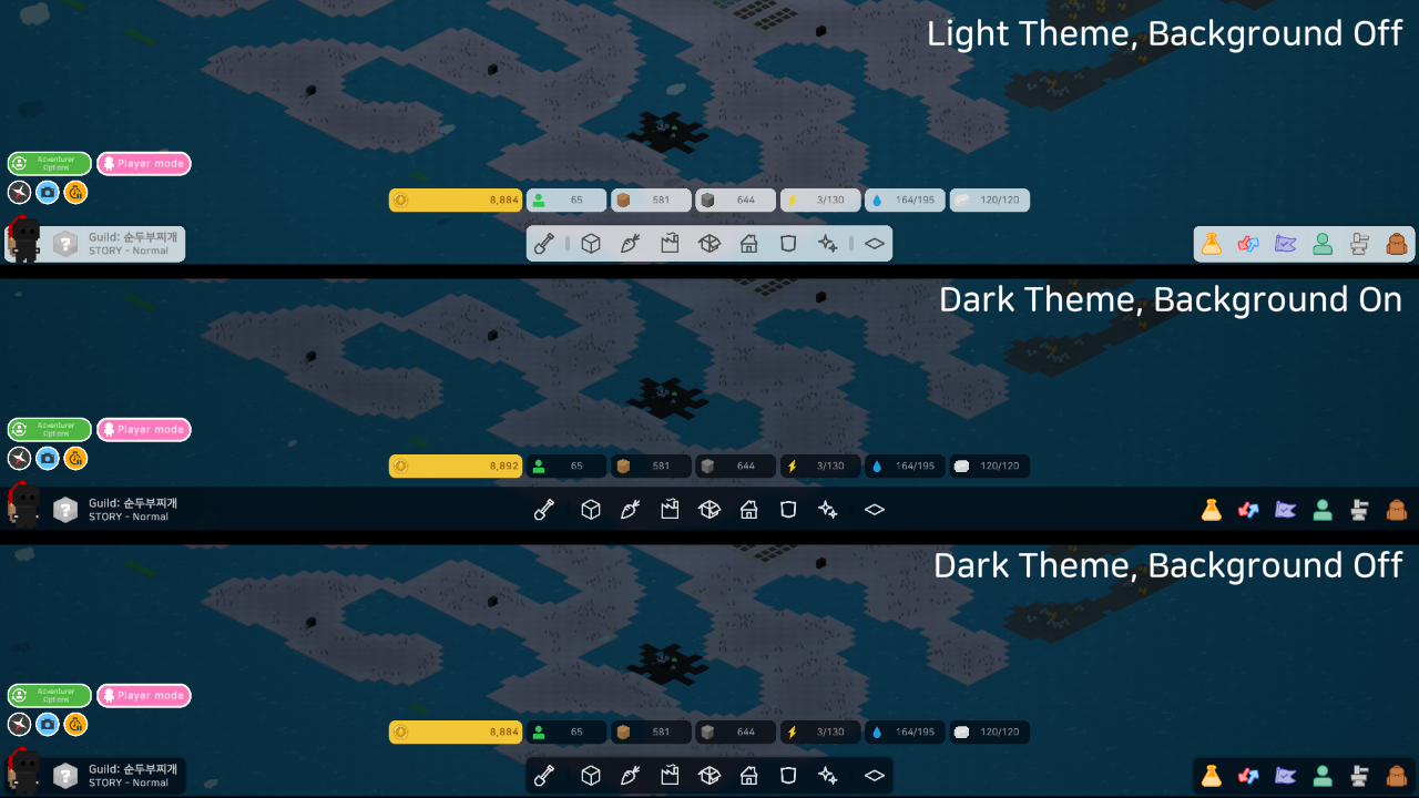 - 옵션에서 게임의 기본적인 UI 테마를 검은색으로 바꿀 수 있는 옵션 추가