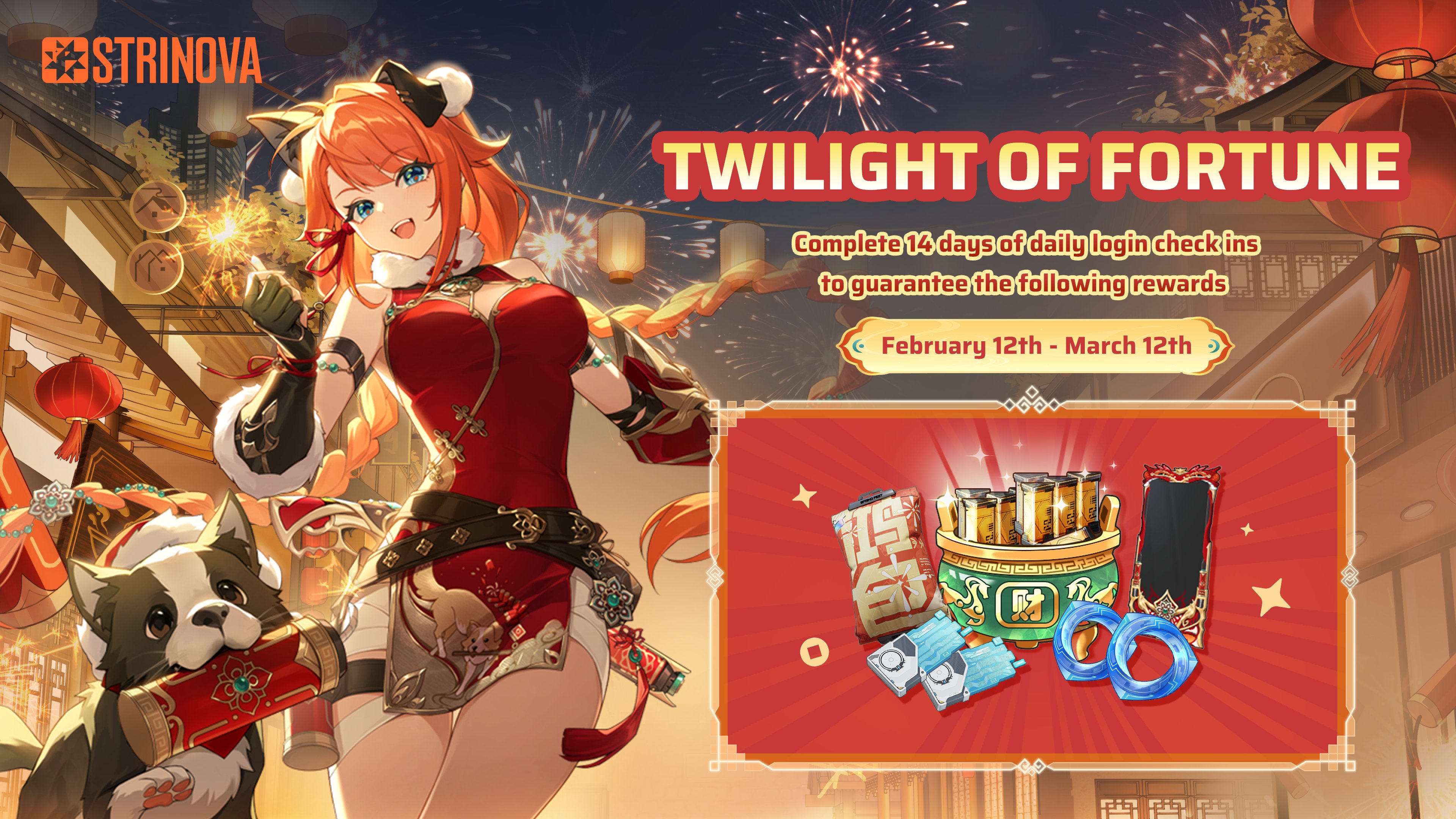 글상세STRINOVA [Free Topic] 스트리노바 출석 14일 설 이벤트 : 행복 기원 정보 [3] 루네사3세 11/02/2026 06:06 AM 11/02/2026 03:06 PM (+09:00) view count 27 View MY HOME View Posts Report Share 새로운 이벤트 : 행복 기원 > 효등제가 스트리노바에 온다! > 동료들과 함께 축하합시다! 이벤트 기간 중 14일간 로그인하여 각종 보상을 획득할 수 있습니다. 📅** 개최 기간**: 2026/02/12 ~ 03/12 Reply 3 alarm Notification has been disabled. Newest Newest By registration By recommendation To enter a comment Log In Please S1759414746439912 11/02/2026 01:34 PM 11/02/2026 10:34 PM (+09:00) View MY HOME View Posts Report Nice! Chim 11/02/2026 11:19 AM 11/02/2026 08:19 PM (+09:00) View MY HOME View Posts Report Sitou 11/02/2026 07:50 AM 11/02/2026 04:50 PM (+09:00) View MY HOME View Posts Report 행복~ Confirm Cancel Confirm