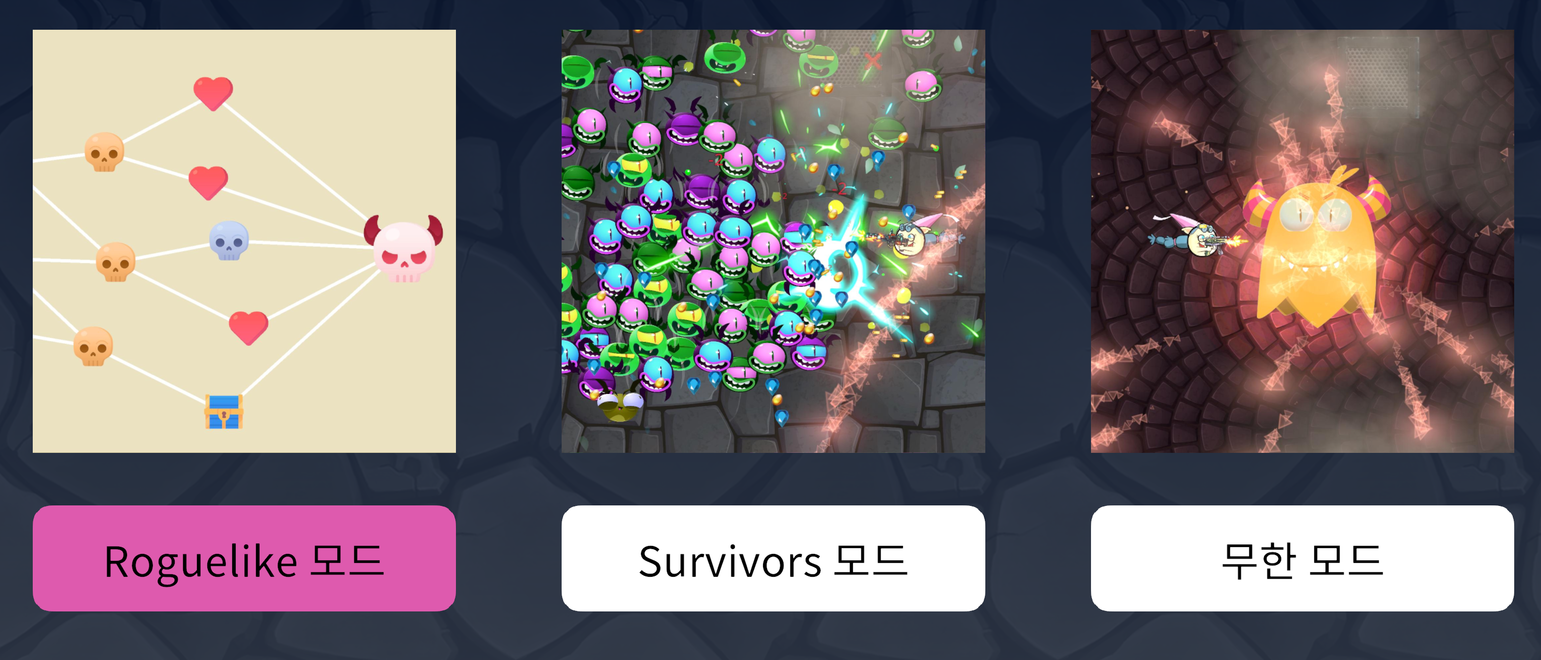 로그라이크 모드가 기본이며 , 어느정도 성장해야 타 모드를 진행할 수 있습니다.