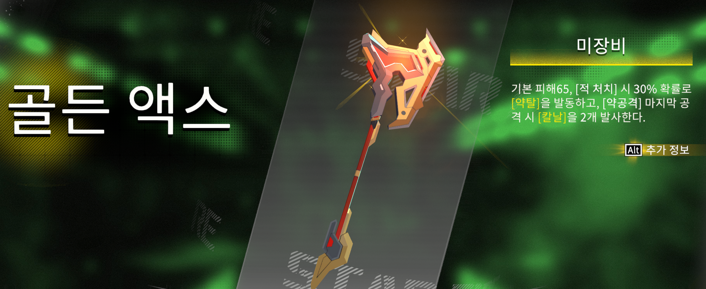 여기에 말도 안되는 사기 무기인 '골든 액스'가 있어서 다른 무기가 굳이 필요한가 싶을 정도로 차이가 커요.