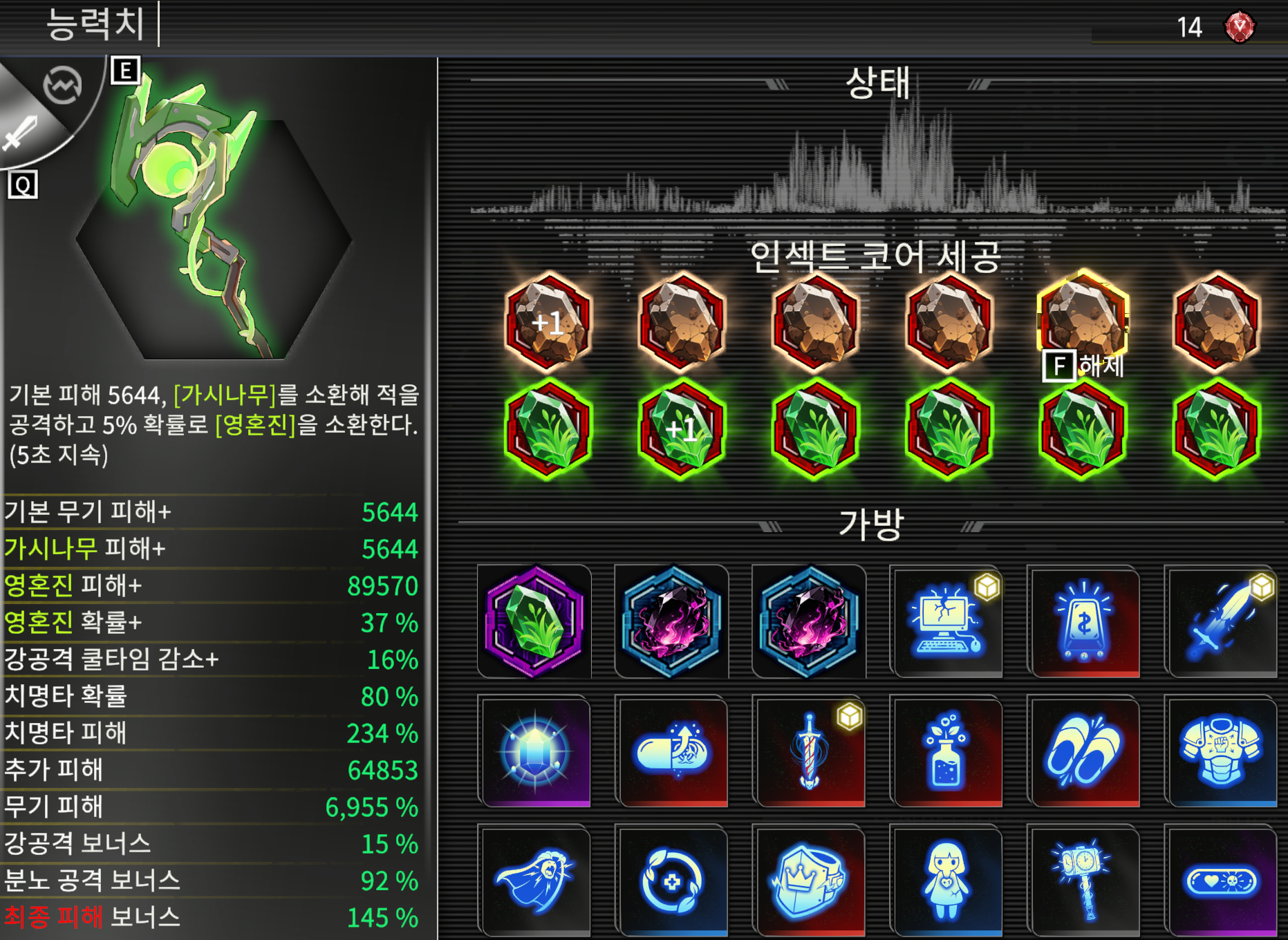 코어 또한 하나를 6개까지 키울수도 있고 , 모든 업그레이드 한 기준으로 4개씩 사용해서 결속 효과를 사용하는 방법도 있어서 플레이 양상이 많이 달라지는 것도 좋습니다.