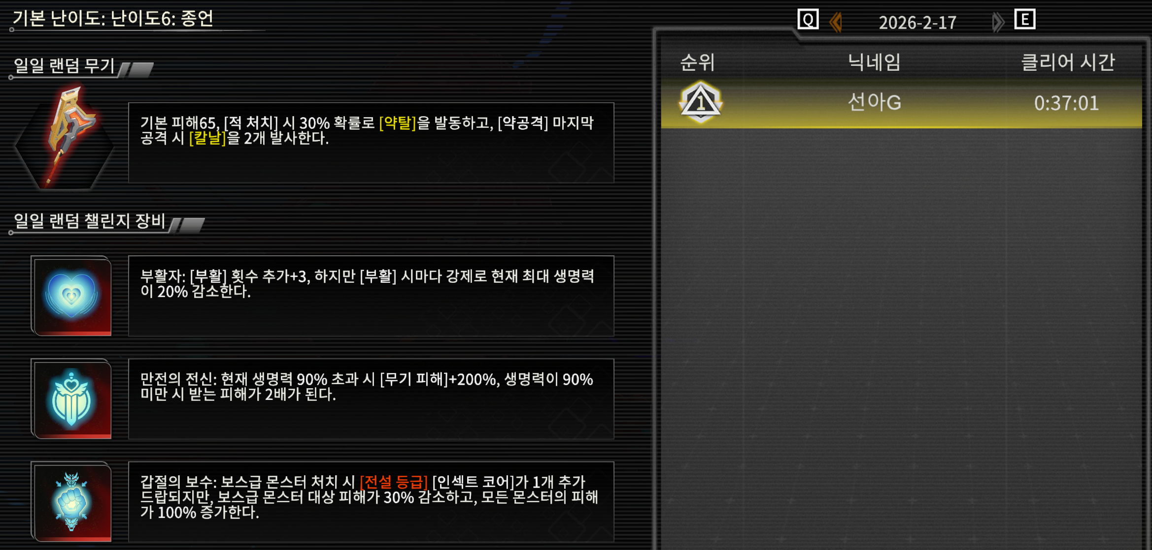 콘텐츠 : ♥♥♥♥♡ (일일 도전으로 다양한 경험을 할 수 있게 해둔 것이나 , 스스로 버프와 디버프를 선택하는 맛이 좋아요.)