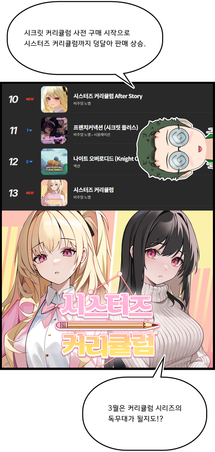 * 고바: 시크릿 커리큘럼 사전 구매 시작으로 시스터즈 커리큘럼까지 덩달아 판매 상승.