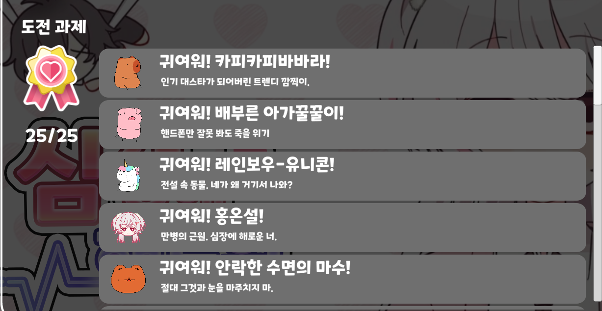 귀여운걸 보면 죽음의 위기를 느끼는 주인공이 '귀여운 것'들을 피해서 살아남는게 핵심 목표입니다.