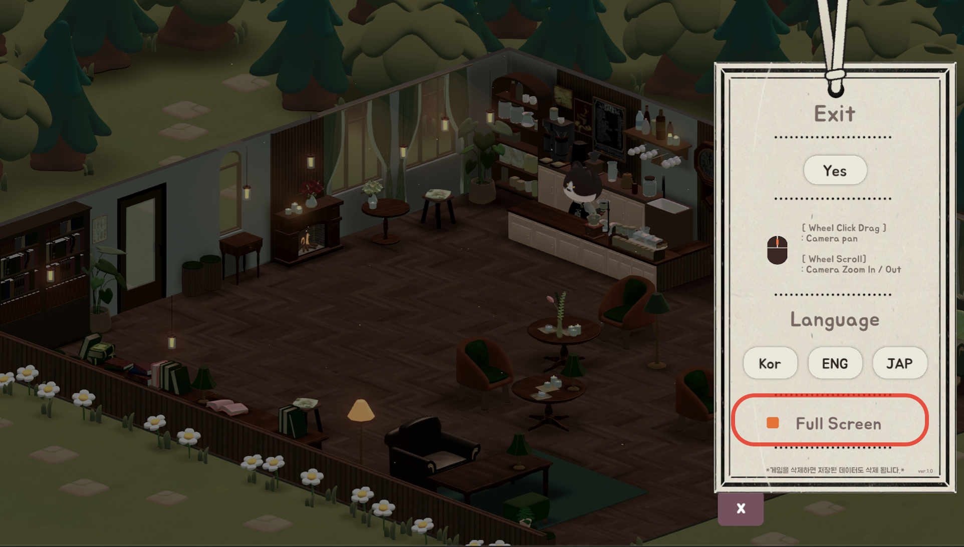 글상세CoffeeCat : Starlight Cat Café [Creator News] "창모드" 업데이트! [1] GM 바리스타냥 28/02/2026 08:28 AM 28/02/2026 05:28 PM (+09:00) view count 13 View MY HOME View Posts Share ✨✨"창모드 " 업데이트 되었습니다!✨✨✨Esc 를 누른 후 "설정" 에서 풀스크린 체크 해제 하면 "창모드"로 게임을 플레이 할 수 있습니다.:)✨✨어떤 크기로든 "커피캣"을 플레이 해보세요!!✨오늘도 커피처럼 향긋한 하루 되세요! ☕️🐱 Reply 1 alarm Notification has been disabled. Newest Newest By registration By recommendation To enter a comment Log In Please 창밖거리 28/02/2026 08:41 AM 28/02/2026 05:41 PM (+09:00) View MY HOME View Posts Report Confirm Cancel Confirm