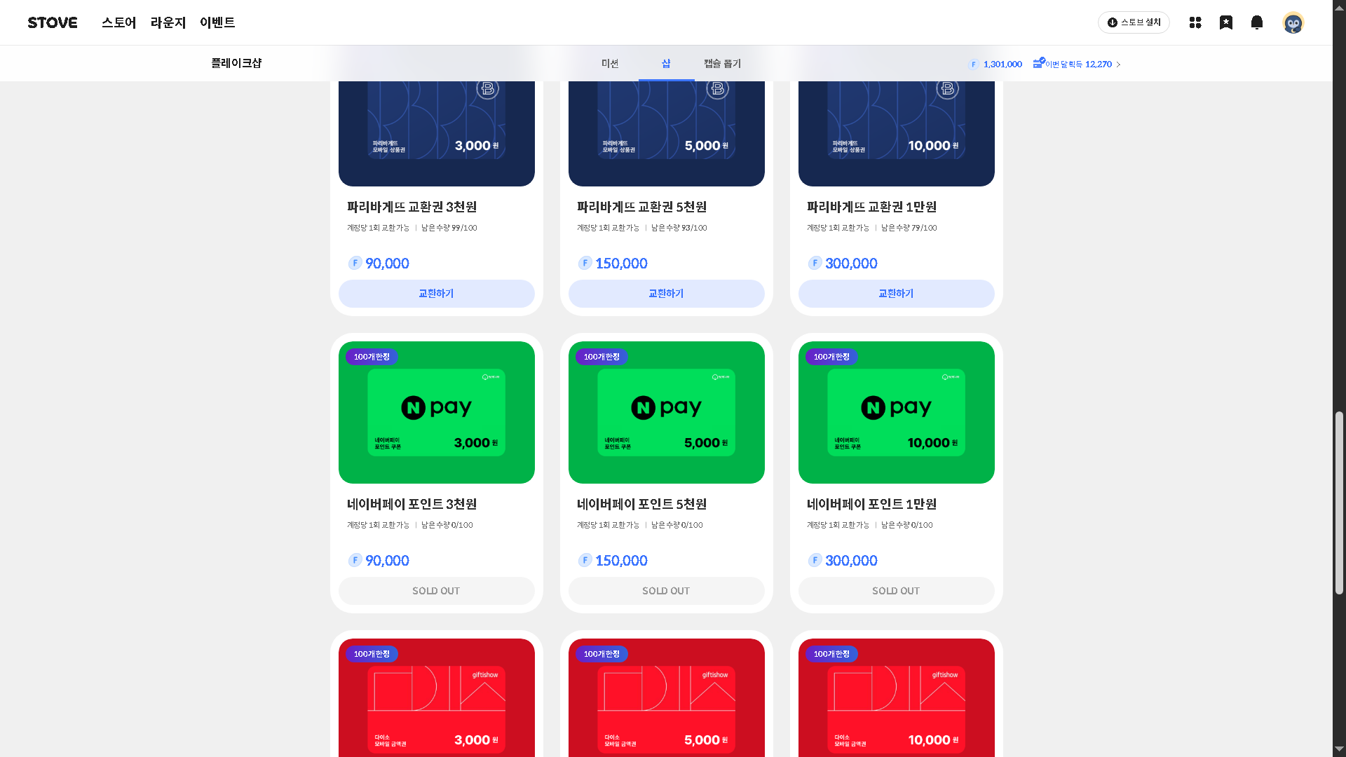 글상세😁 Free Talk [FreeTalk] 잠이 오지 않는 밤~ 이영상을 보면서 잠을 청해 보아요~ [12] S105059962609777 01/03/2026 06:37 PM 02/03/2026 03:37 AM (+09:00) view count 45 View MY HOME View Posts Report Share 3월 되면서 스토어 출석 쿠폰들이 10프로에서 5프로 25프로에서 20프로 하향됐고~ 스토어 출석 100원 쿠폰 기한도 다음달 말 즉 두달이었는데 당월 다써야하는걸로 바뀌었네요~ 스토어 샵 게임들도 다 완판이 되었고... 이건 아마도 해외 유저들이 플레이크 소모를 해야 하니 교환 하는것 같습니다..스토어 샵 상품에는 이것저것 여러개 생겨서 바꾸는 재미가 있을것 같네요...그중에 네이버페이는 어제 새벽 5시쯤인가 제가 확인 했을때는 이미 완판이더라구요... 현금화가 가능하니 쏜살같이 매진이 되었네요.. Reply 12 alarm Notification has been disabled. Newest Newest By registration By recommendation To enter a comment Log In Please S7651504582609709 10/03/2026 05:59 PM 11/03/2026 02:59 AM (+09:00) View MY HOME View Posts Report S1759414746439912 08/03/2026 10:52 AM 08/03/2026 07:52 PM (+09:00) View MY HOME View Posts Report Nice! BS엔지니어 07/03/2026 03:22 PM View MY HOME View Posts Report S1130600821183038 03/03/2026 07:40 PM 04/03/2026 04:40 AM (+09:00) View MY HOME View Posts Report 내이상형편수희 02/03/2026 02:53 PM 02/03/2026 11:53 PM (+09:00) View MY HOME View Posts Report Chim 02/03/2026 11:02 AM 02/03/2026 08:02 PM (+09:00) View MY HOME View Posts Report 브라키움 02/03/2026 05:16 AM 02/03/2026 02:16 PM (+09:00) View MY HOME View Posts Report 바드냥냥이 02/03/2026 03:40 AM 02/03/2026 12:40 PM (+09:00) View MY HOME View Posts Report ㄷㄷㄷㄷ 한라미 02/03/2026 03:22 AM 02/03/2026 12:22 PM (+09:00) View MY HOME View Posts Report 리즈의리즈시절 02/03/2026 03:19 AM 02/03/2026 12:19 PM (+09:00) View MY HOME View Posts Report Sitou 02/03/2026 12:20 AM 02/03/2026 09:20 AM (-NaN:NaN) View MY HOME View Posts Report 점점 타이트해지네요 ㅠ balro 01/03/2026 08:16 PM 02/03/2026 05:16 AM (+09:00) View MY HOME View Posts Report 도라마코리아... 그러고 보니 안 본 지 꽤 됐군요. 잠들기 전에 백색 소음으로 늘 틀어 놨던 추억이.... Confirm Cancel Confirm