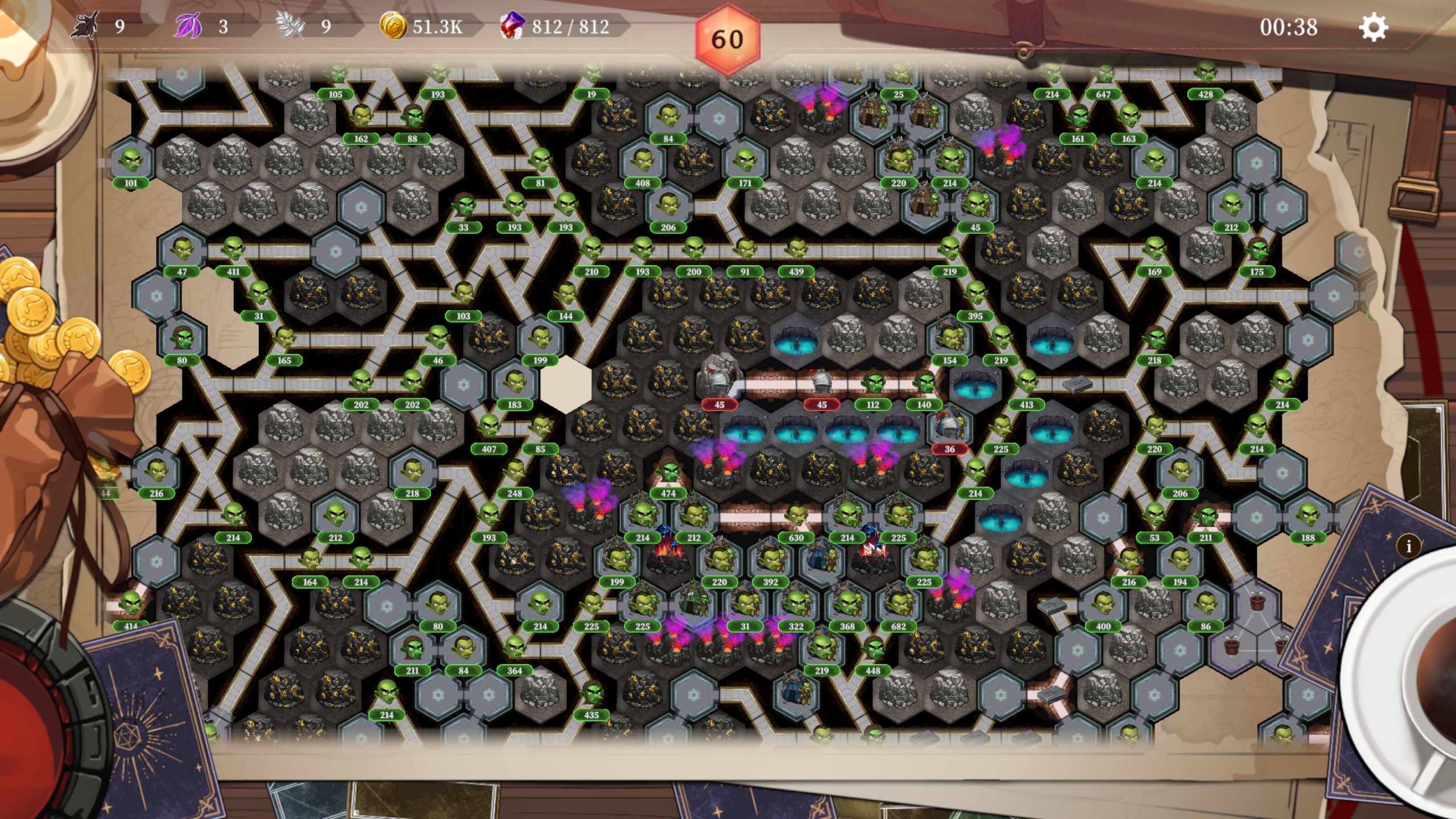 후반부 할때는 게임 일시정지 해놓고 던전 맵 전체 철거해서