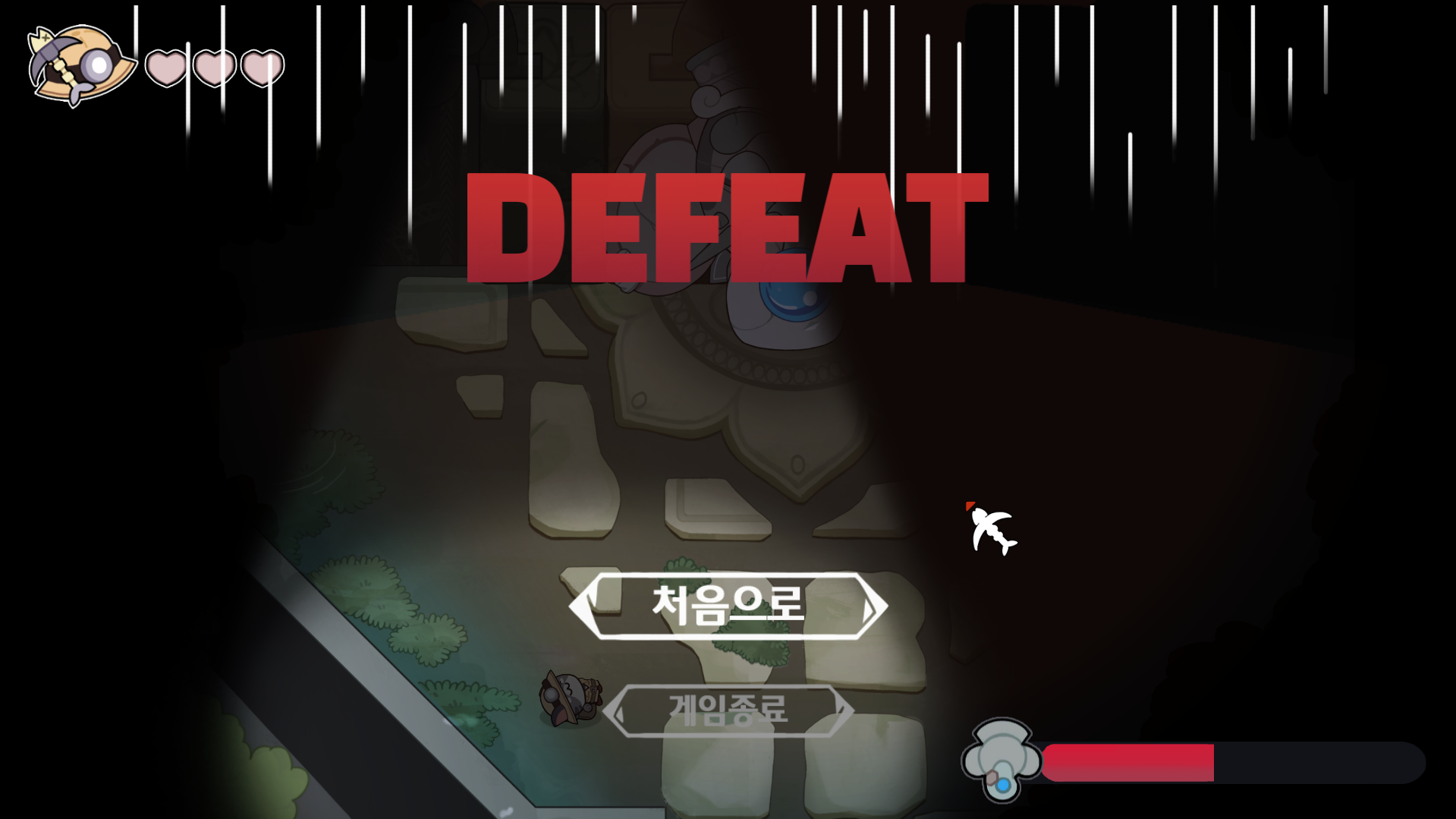 처음 플레이했을때 보스전에서 관통 곡괭이를 줍는바람에 고전해서 다시 잡으러오게 되었던 2스테이지 보스가 제일 기억에 남네요
