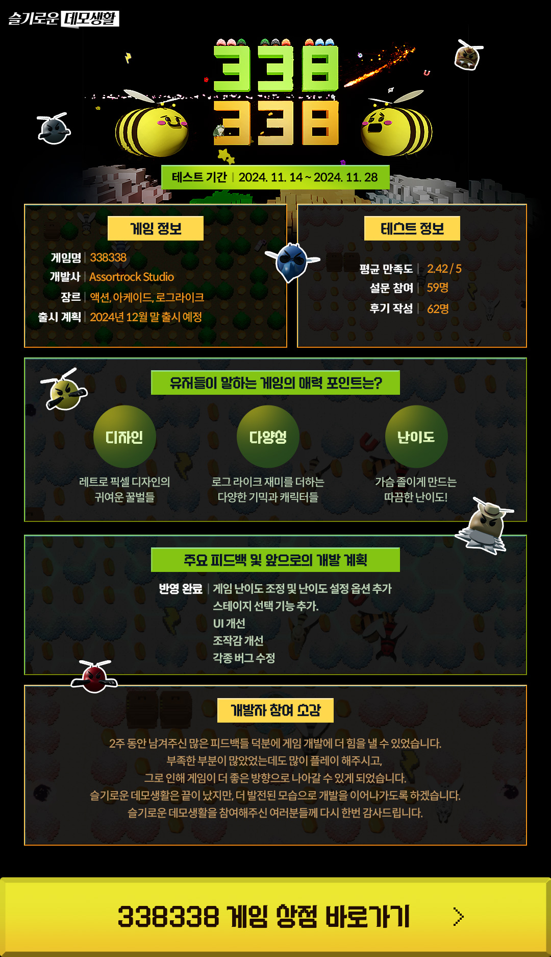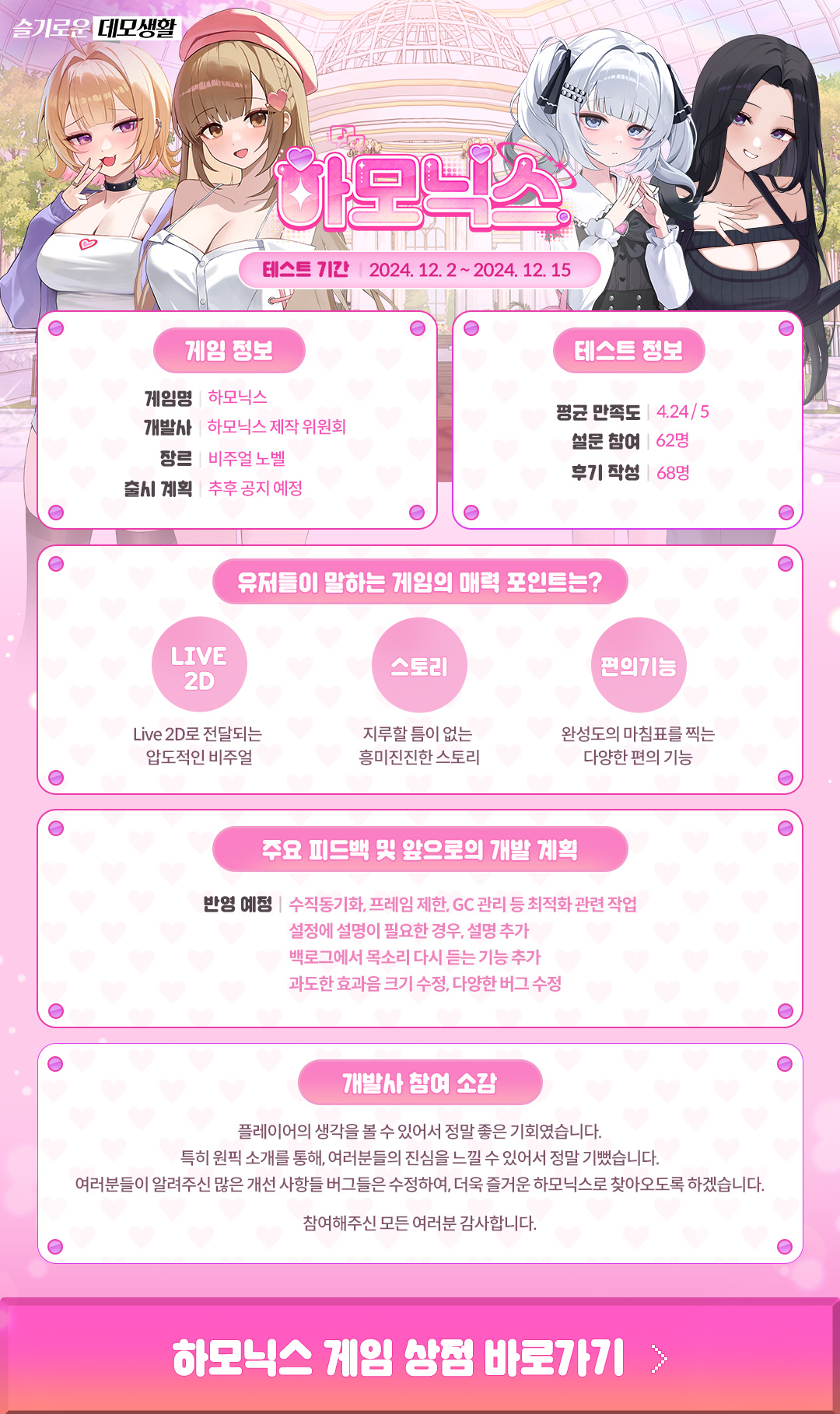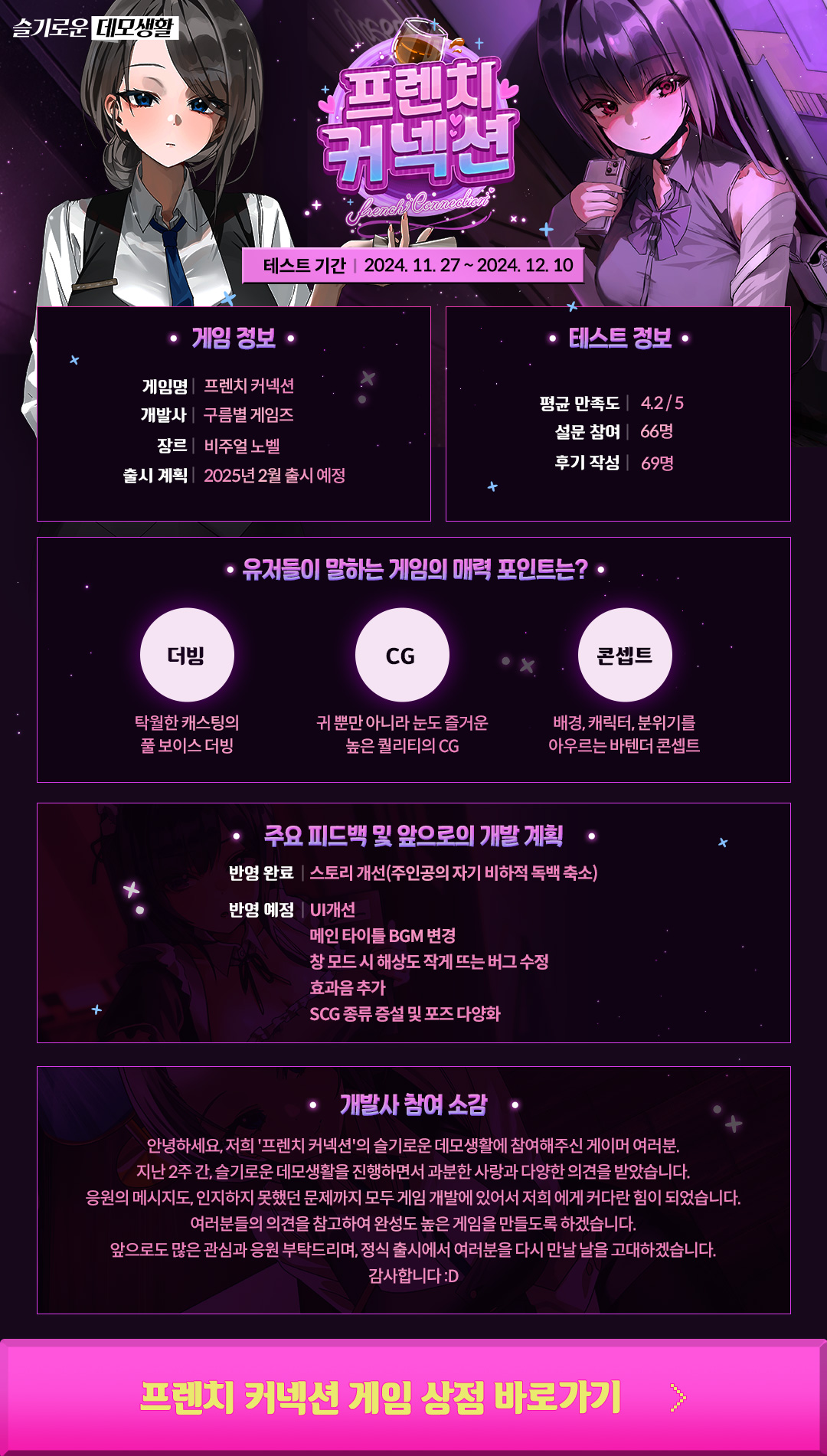 개발사의 참여 후기와 앞으로의 계획을 이미지로 확인해보세요!