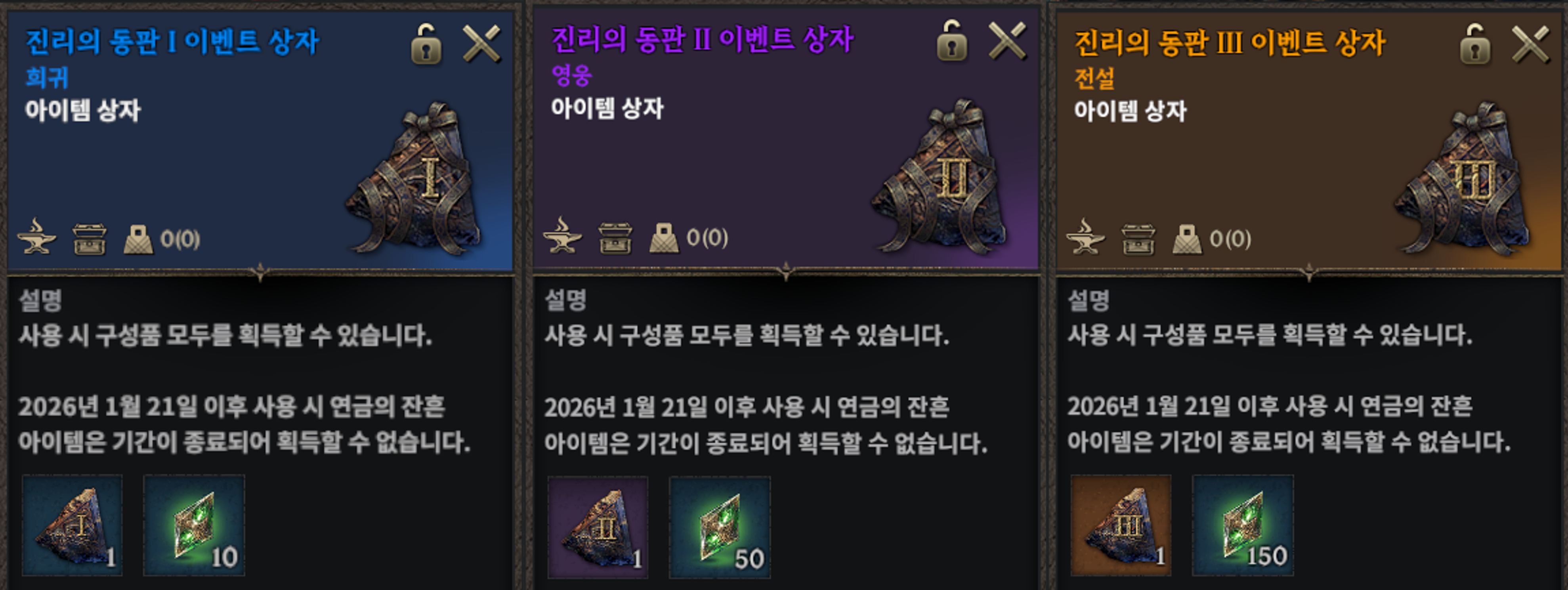 1) 이벤트 기간 동안 연금술에서 획득하는 진리의 동판은 진리의 동판 이벤트 상자로 지급됩니다.