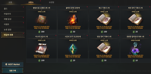※ 연금의 잔흔 이벤트 상점은 2026년 1월 21일 04:00에 종료됩니다.